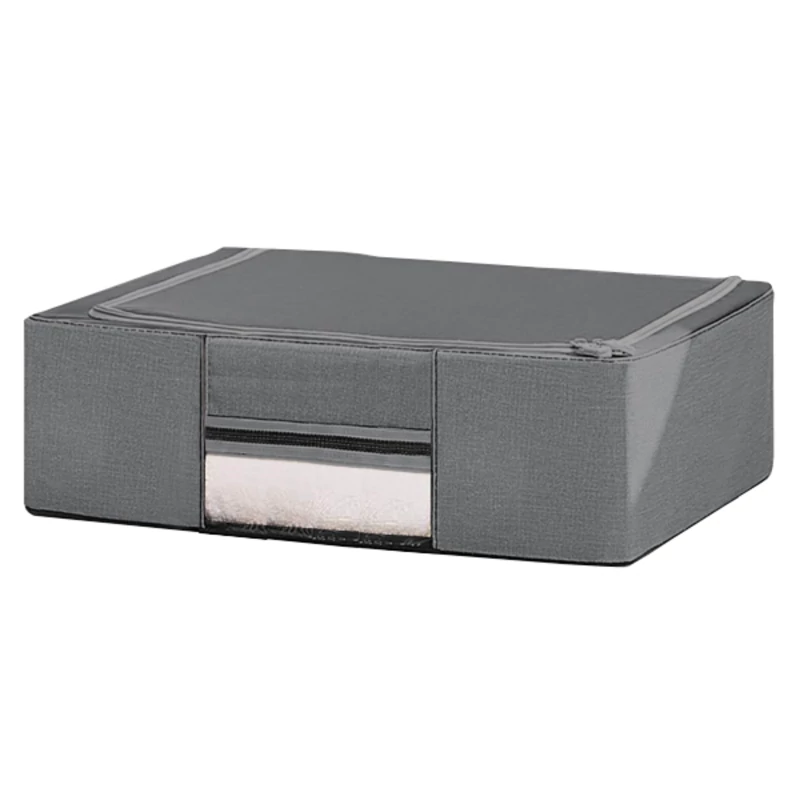 ابزاری کاربردی برای استفاده حداکثری از فضاهای باریک نظیر زیر تخت ابتدای معرفی باکس لباس داخل کمد است . محصولی نوین و در عین سادگی ، زیبا که امکان استفاده از فضاهای مختلف را بدون وجود محدودیت برای شما محیا می کند . لباس ، وسایل شخصی و یا هر لوازمی دیگری را که بخواهید می توانید درون محفظه باکس قرار داده و در فضایی به صورت منظم نگهداری کنید . دستگیره تعبیه شده در قسمت جلوی محفظه علاوه بر امکان حمل و جابه جایی آسان ، به شما این امکان را می دهد تا به سادگی بقچه را در فضاهای باریک به سمت بیرون کشیده و به طرف داخل هدایت کنید . در زیر دستگیره نیز پوششی طلقی شکل از جنس پلاستیک ضخیم و کاملاً شفاف قرار داده شده که امکان مشاهده محتویات درون باکس لباس زیر تختی را فراهم می کند . نوع طراحی محصول و همچنین امکان جابه جایی آسان آن قابلیت استفاده از باکس برای مسافرت را نیز فراهم آورده است . محصول فوق ، فاقد چهار چوب بوده و صرفاً یک محفظه مکعبی برای نظم بخشیدن به البسه و سایر لوازم و وسایل شخصی می باشد