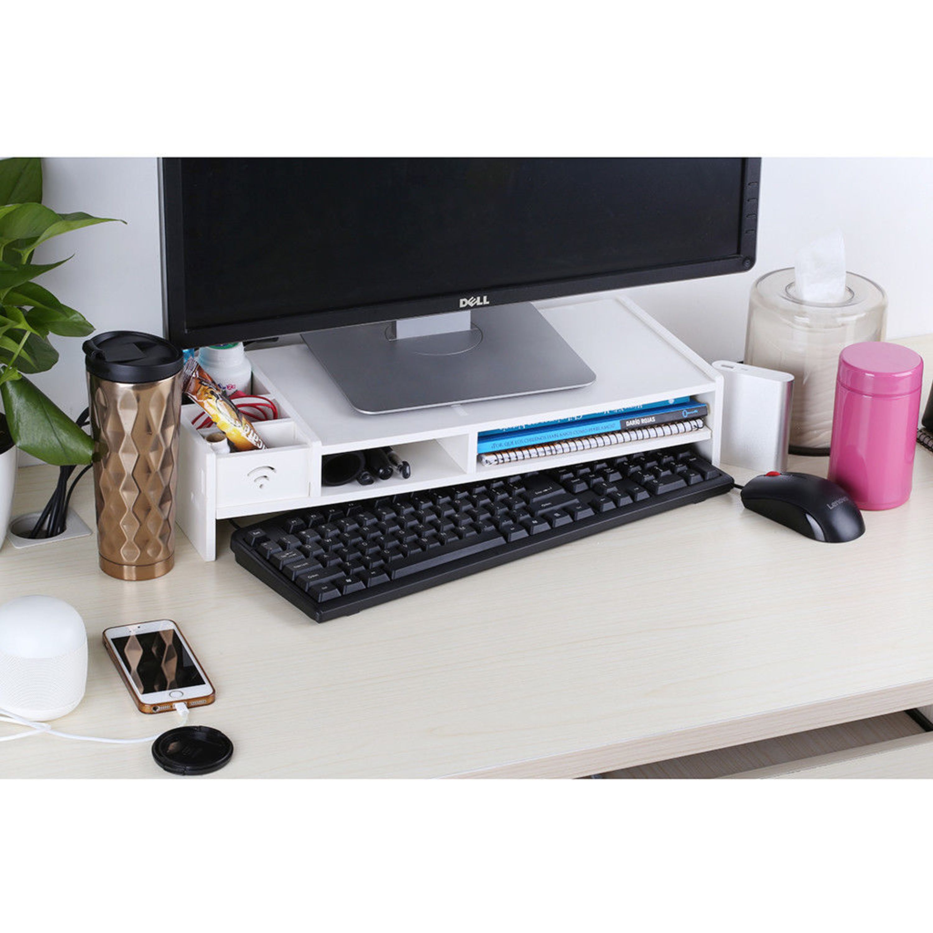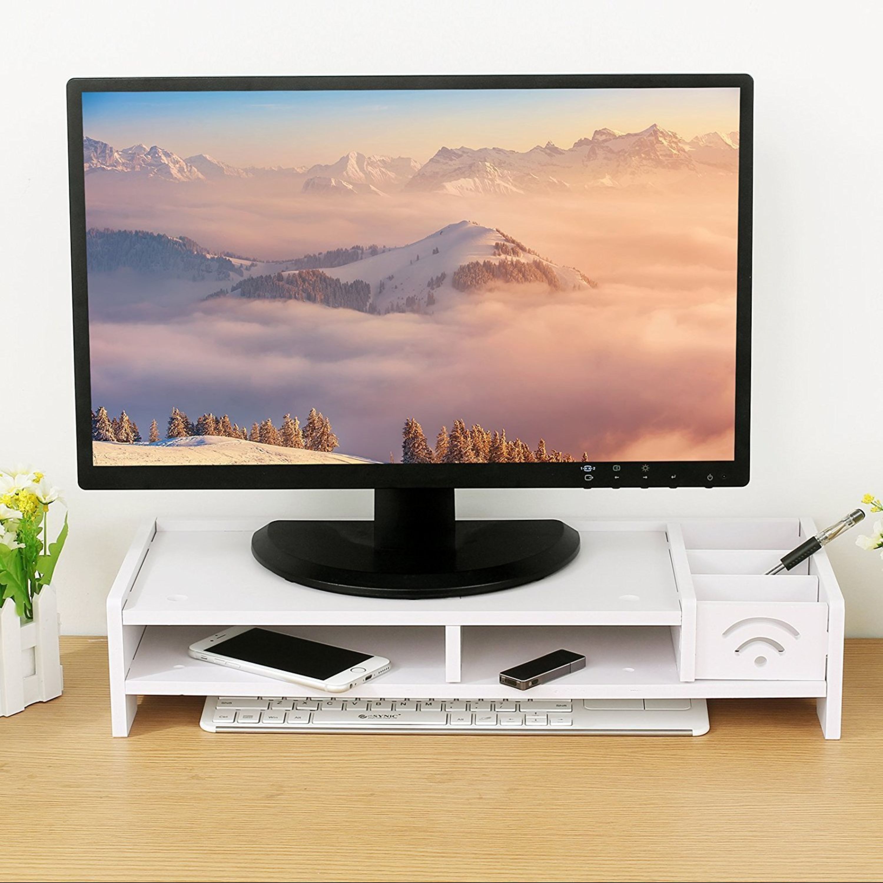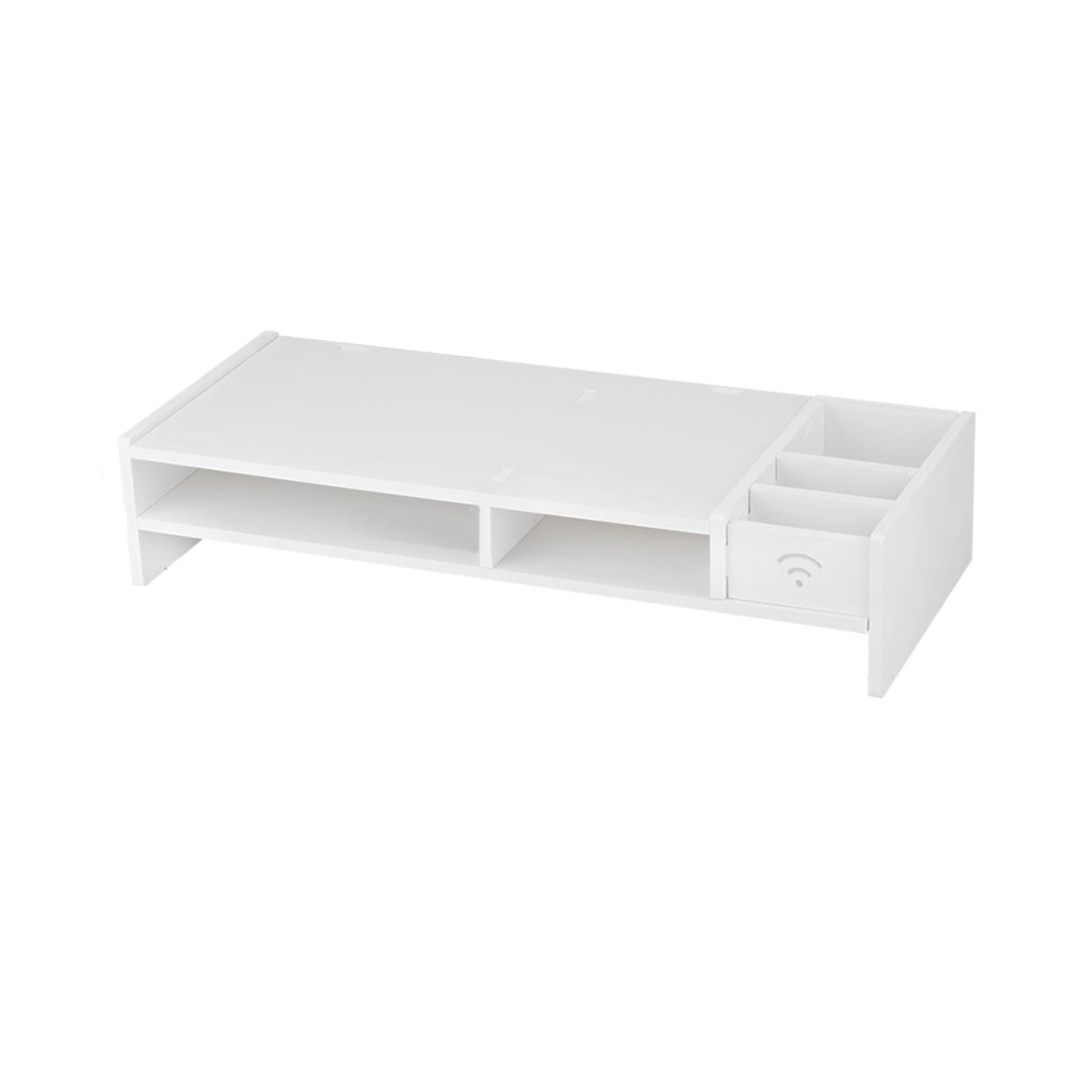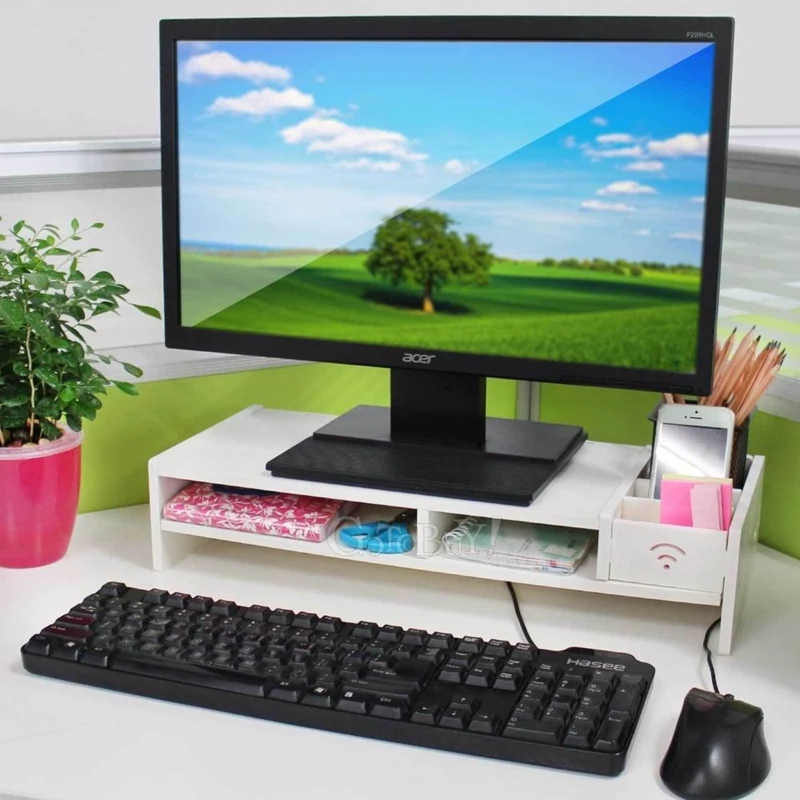 شلف استند زیر مانیتور ، یک شلف اداری زیبا و کاملاً کاربردی جهت استفاده بر روی میز رایانه ، میز کار و میز تحریر است . این شلف از جنس پی وی سی با کیفیت تولیدی بسیار بالایی ساخته شده که از آن می توانید برای نگهداری لپ تاپ و نمایشگر رایانه در ارتفاع مناسب بر روی میز استفاده کنید ، این کار باعث قرار گرفتن بدن با زاویه مناسب و استاندارد در پشت میز رایانه می شود که نتیجه آن جلوگیری از افتادگی کتف و شانه و آسیب به چشم می شود . شلف استند دارای صفحه نگهدارنده نمایشگر ، پنج محفظه با ورودی های عمودی و افقی جهت قرار دادن و نگهداری از وسایل و لوازم مختلف و یک محفظه سراسری در زیر شلف برای نگهداری لوازمی با ابعاد بزگتر نظیر کیبورد رایانه ، کتاب ، پوشه و ... می باشد . شلف رومیزی زیر لپ تاپ فضای زیادی برای نگهداری از وسایل مختلف شما به تفکیک فرهم می کند و از آن می توانید بر روی میز کار ، میز تحریر ، میز رایانه و ... استفاده کنید . طراحی زیبا ، کاربردی با کیفیت تولیدی بالا در کنار مقاومت محصول در برابر رطوبت ، همگی ویژگی هایی هستند که این محصول را به عنوان یک شلف رومیزی خاص معرفی نموده اند.