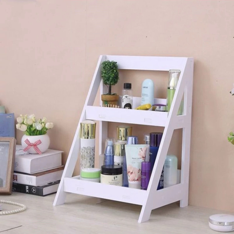 استند لوازم آرایش دو طبقه ، محصولی با طراحی ظاهری ساده و در عین حال بسیار زیبا که جلوه ای خاص را بر روی میز اتاق شما به وجود خواهد آورد . این شلف لوازم آرایشی از نوع شلف رومیزی می باشد که از جنس پی وی سی و با کیفیت بسیار بالایی تولید شده است و از آن می توانید برای نگهداری لوازم آرایشی و بهداشتی مختلف به صورت منظم بر روی میز اتاق خود استفاده نمایید .علاوه بر این لوازم می توانید از شلف رومیزی برای نگهداری وسایل تزئینی ، لوازم حمام ، لوازم تحریر و ... نیز بهره ببرید . به کارگیری این محصول علاوه بر ایجاد نظم در نگهداری از وسایل و همچنین ایجاد زیبایی محیطی ، فضای بیشتری را بر روی میز برای شما محیا می کند .