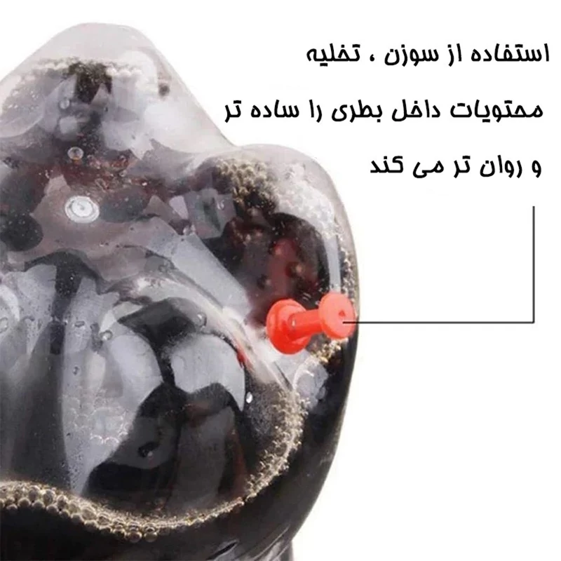 - - با استفاده از سوزن همراه محصول چند سوراخ در انتهای نوشابه برای روان شدن ایجاد کنید