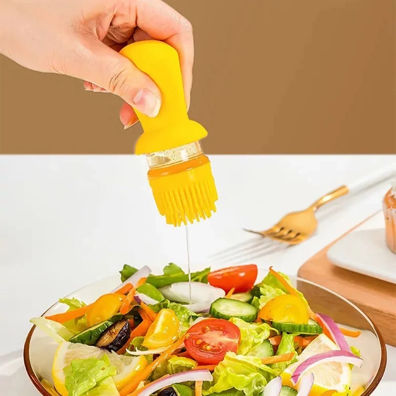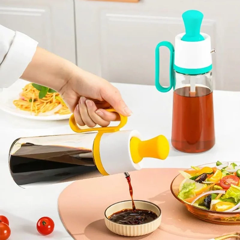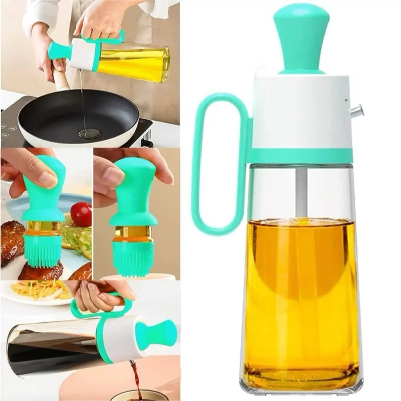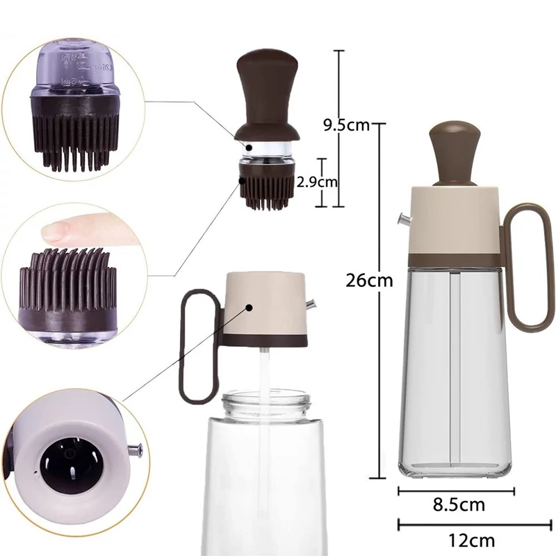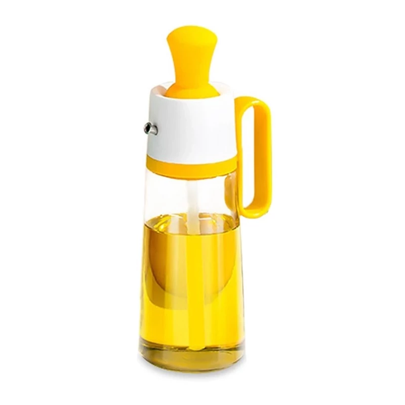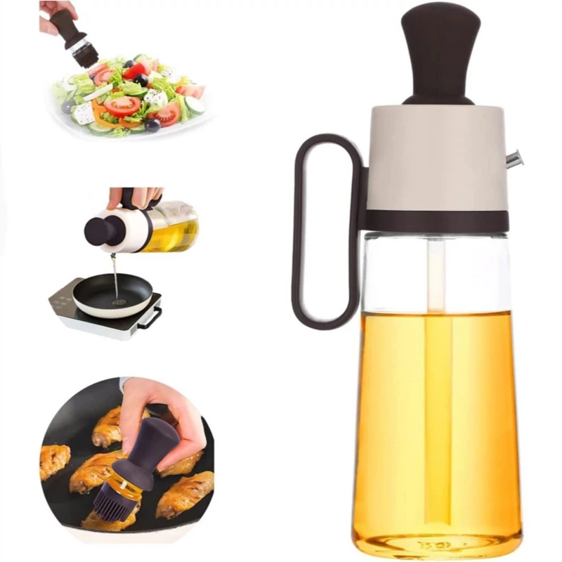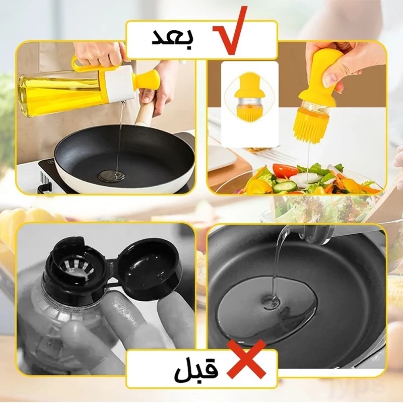 بطری و فرچه روغن ریز دوکاره ، یک محصول جدید ، کاربردی و البته حرفه ای برای آشپزخانه شما با طراحی ظاهری منحصر به فرد و زیبا که می تواند علاوه بر متقاعد کردن سلیقه ، کمک بزرگی برای شما محسوب شود . این کالا در نگاه اول یک بطری شیشه ای با سری تولید شده از جنس پلاستیک فشرده مقاوم می باشد که جلوه ای خاص را برای آن پدید آورده . ظرفیت محفظه برابر با 630 میلی لیتر است که می توانید از آن برای روغن ، سرکه ، آبلیمو و مایعاتی از این قبل استفاده کنید . خروجی شیشه روغن ریز بر خلاف بسیاری از نمونه های مشابه دارای بیرون آمدگی می باشد که سبب خروج آسان تر روغن از داخل شیشه می شود . درب محفظه قابلیت باز و بشته شدن به صورت چرخشی برای پر کردن آسان تر را دارد ، اما وجه تمایز کالا با دیگر نمونه های هم ردیف خودش را باید فرچه تعبیه شده بر روی دهانه سری روغن ریز عنوان کرد ، فرچه ای سیلیکونی همراه با محفظه شیشه ای دارای ظرفیت 9 میلی لیتر . در حالت عادی فرچه بر روی دهانه قرار دارد ، ولی در صورت نیاز می توانید دستگیره آن را کمی فشرده کرده و رها کنید تا روغن را به داخل محفظه خود بکشد ، حالا آن را جدا کرده و به سادگی سطح مواد غذایی و ظروف را به صورت بهینه به روغن آغشته کنید ، به همین سادگی . از بطری روغن آسان ریز می توانید علاوه بر روغن برای مایعات دیگری نظیر آبلیمو ، آبغوره ، سرکه و یا برخی از سس های مایع نیز استفاده کنید .