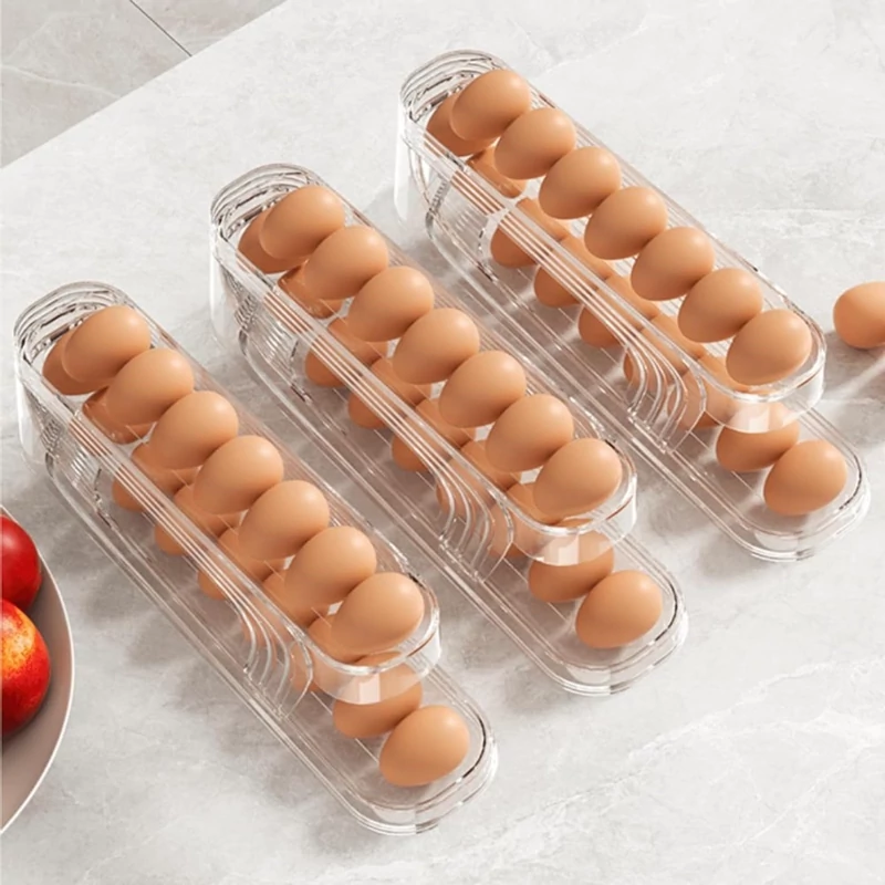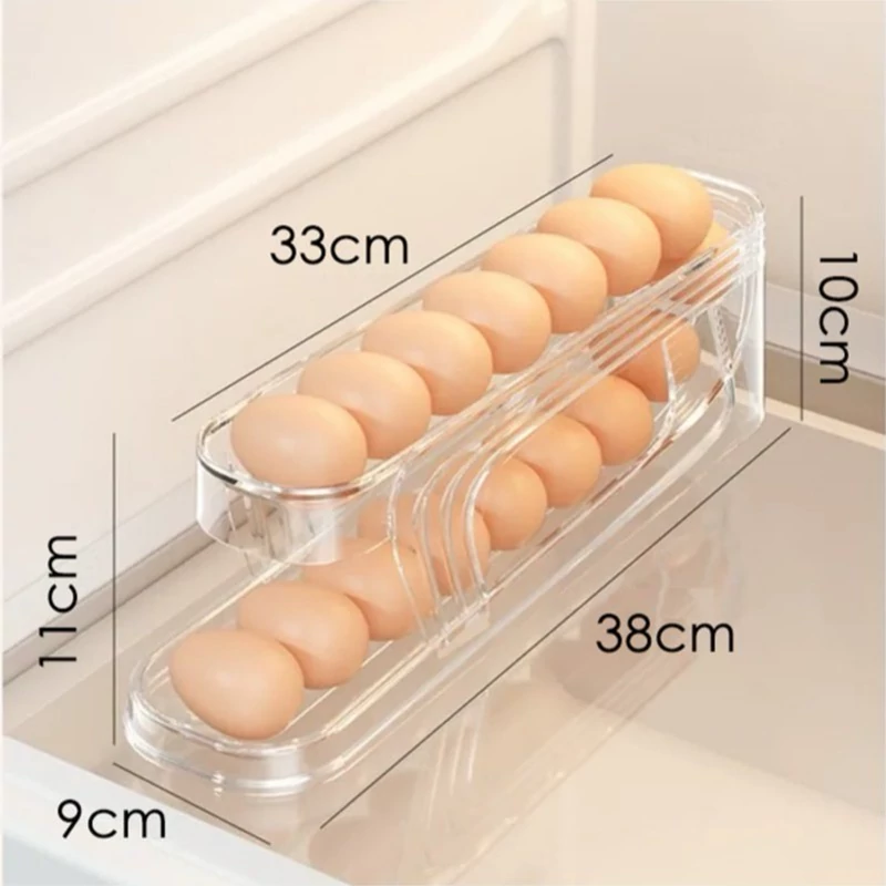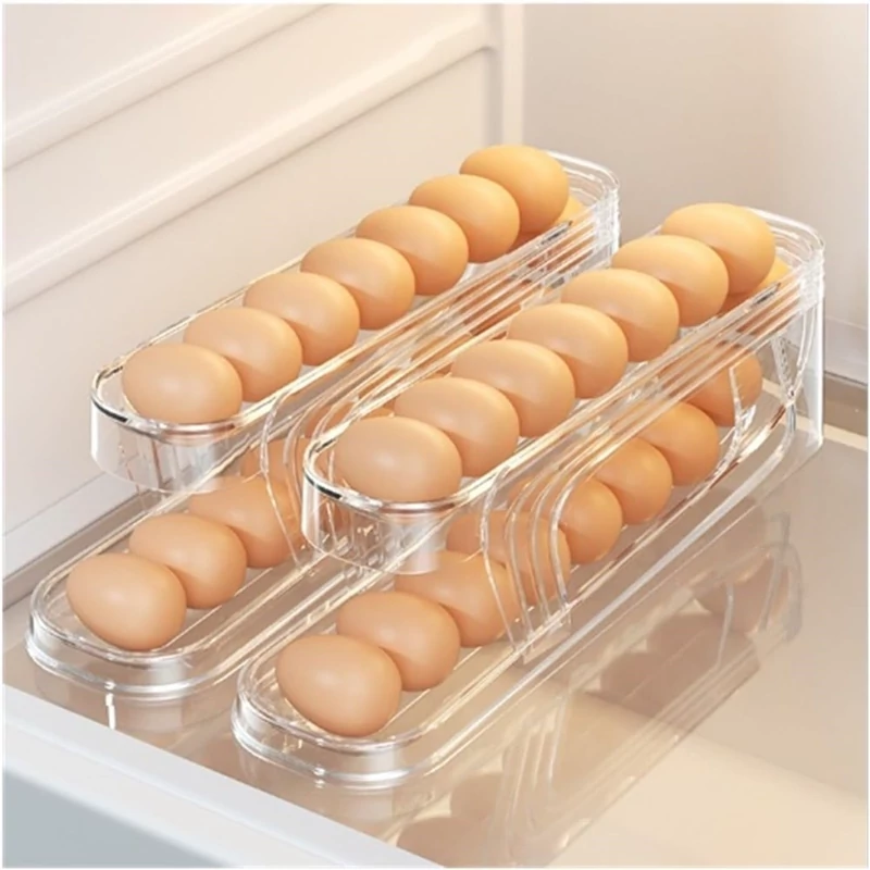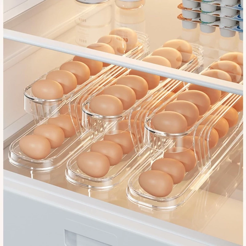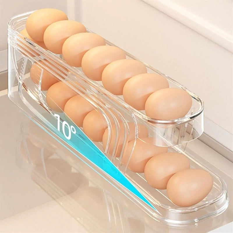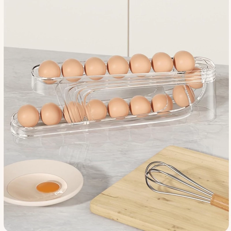 نگهدارنده ای جدید با طراحی ظاهری خاص که شامل دو طبقه است ، طبقاتی که به سمت خروجی تخم مرغ در قسمت پایین مقداری دارای شیب هستند ، این خصوصیت باعث شده تا زمانی که تخم مرغی را از طبقه پایین کالا بر میدارید ، به صورت خودکار دیگر تخم مرغ ها به سمت خلاء ایجاد شده حرکت کرده تا فضای خالی موجود را پر کنند . نگهدارنده تخم مرغ ریلی دارای طراحی باریک برای قرارگیری تخم مرغ ها به صورت ردیفی در دو طبقه می باشد ، این ویژگی اشغال فضای کمتر و البته ایجاد امکان استفاده حداکثری از فضای داخل یخچال را فراهم نموده ، بدنه کاملاً شفاف و اصطلاحاً کریستالی کالا نیز خصوصیت دیگر محصول به شما می رود که زیبایی و جلوه ای خاص را برای آن فراهم آورده . داخل یخچال ، روی کابینت ، کنار اجاق گاز و یا هر جای دیگری که نیاز داشته باشید ، می توانید از این محصول برای نگهداری تخم مرغ ها با قابلیت دسترسی آسان استفاده کنید .