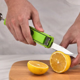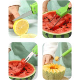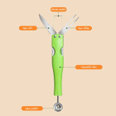 اسلایسر هندوانه چند کاره ، یک ابزار چند منظوره جدید آشپزخانه است که درواقع نه یک اسلایسر تنها ، بلکه باید گفت چهار ابزار در یکی ، برای دسترسی ساده تر و البته تسریع در عملکرد می باشد . این کالا مجهز به یک تیغه اسلایسر برای برش یک دست و یک اندازه هندوانه است که به صورت تاشو در زیر دسته تعبیه شده ، برای دسترسی به آن کافی است سری تیغه را به سمت بیرون بکشید و پس از استفاده ، مجدد در جایگاه خود قرار دهید . اما در سوی دیگر کاتر برش زن هندوانه ، یک اسکوپ کوچک به قطر 1.8 سانتی متر قرار گرفته که برای تزیین و میوه آرایی کارایی دارد . اما دسته کالا ابزار دیگری نیز درون خود جای داده ، وقتی به دو طرف دسته دقت کنید ، دو زبانه استیل خواهید دید که یکی از آنها چاقو و دیگری چنگال است که به صورت تاشو داخل دستگیره تعبیه شده اند ، برای استفاده از آنها می توانید هر کدام را از قسمت مشخص شده به سمت بیرون بکشید و پس از بهره برداری به جایگاه خود برگردانید ، به همین سادگی . تیغه های استیل و دسته تولید شده از جنس پلاستیک فشرده پایان بخش معرفی یک ابزار چندکاره کاربردی است که می توانید از آن برای برش ، سرو و تزیین میوه هایی نظیر هندوانه ، گرمک و ... بهره ببرید .