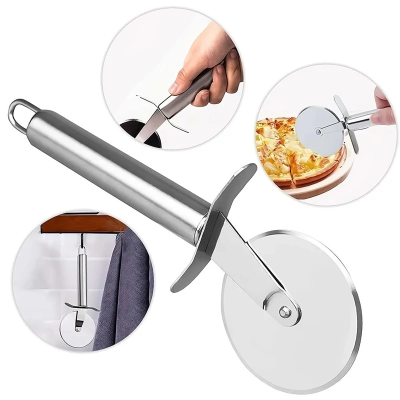 پیتزا بر خانگی ، نمونه ای ساده و بسیار کاربردی برای استفاده در آشپزخانه منزل است ، این کالا تولید شده از جنس استیل و دارای کیفیت همراه با مقاومت مناسب می باشد . دسته و کاتر دوار گونه کالا با استفاده از یک محافظ از هم تفکیک شده اند که به هنگام استفاده مانع از سر خوردن دست به سمت برش زن و ایجاد خطرات احتمالی برای آن می شود ، پس با خیالی آسوده می توانید ، با استفاده از کاتر ، پیتزا را برش بزنید . در قسمت انتهایی دسته ، یک حلقه تعبیه شده که قابلیت آویزان کردن را برای برش زن پیتزا فراهم آورده تا بتوانید در کمترین فضای ممکن با قابلیت دسترسی آسان از آن نگهداری کنید . زیبایی ظاهری در عین سادگی با تنوع رنگ استیل ، امکان انتخاب پیتزا بر خانگی برای هر آشپزخانه ای و البته هماهنگی آن با دیگر لوازم را فراهم آورده .