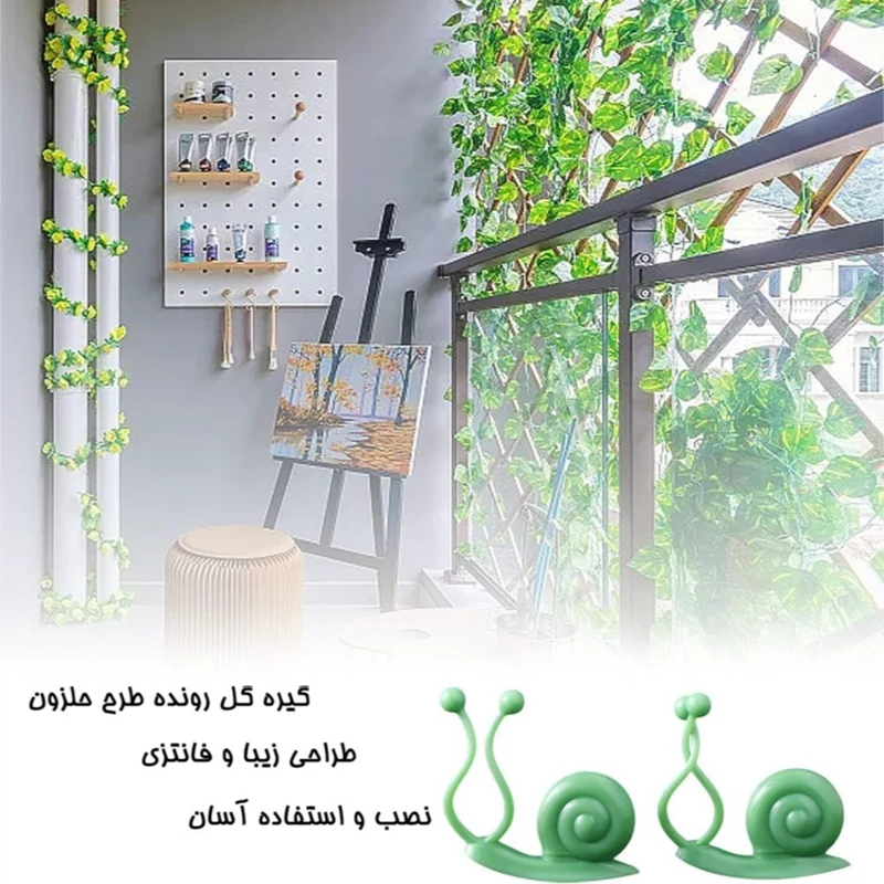 گیره گل رونده طرح حلزون ، محصولی جدید و کاربردی است که از جنس پلاستیک فشرده مقاوم و باکیفیت به شکل یک حلزون سبز رنگ طراحی شده ، ظاهری فانتزی و بسیار زیبا که می تواند جلوه ای منحصر به فرد در کنار ساقه و برگ گیاهان روند بر روی دیوار ایجاد کند . در پشت حلزون لایه چسبی تعبیه شده که امکان نصب آسان کالا بر روی سطوح مختلف را فراهم آورده ، کافی است لایه محافظ چسب را بر داشته و آن را بر روی سطحی تمیز بچسبانید و در صورت نیاز به جداسازی تنها با کمی حرارت سشوار آن را از روی سطح جدا کنید و این یعنی کمترین میزان محدودیت در بکارگری کالا . ساقه گیاه در میان شاخک های حلزون قرار گرفته و در نهایت شاخک ها به دور هم میپیچند تا بسته شده و مانع از جدا شدن ناخواسته گیاه شوند ، بدین ترتیب بدون ایجاد فشار و یا احتمال آسیب دیدگی گل می توانید ساقه های آن را بر روی سطح دیوار به شکلی منظم و البته زیباتر از قبل نگهداری کنید . گیره نگهدارنده گل رونده طرح حلزون ارائه شده در بسته بندی 10 عددی با تنوع رنگ سبز می باشد .