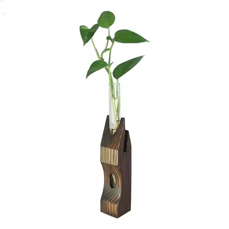 گلدان چوبی مدل پیروزی ، محصولی جدید با طراحی ظاهری کاملاً متفاوت می باشد . این گلدان تولید شده از جنس چوب مرغوب و باکیفیت بوده که ظاهر آن برگرفته از دستی است که تنها دو انگشت خود را به نشانه پیروزی باز کرده . در میان این دو انگشت یک محفظه لوله ای شفاف قرار داده شده که می توان از آن برای جای دادن گل و گیاه با سافه کوچک استفاده نمود . شیشه ای بودن محفظه مانع از انتقال رطوبت به سطح چوب و آسیب احتمالی به آن خواهد شد ، علاوه بر این نمایان بودن ساقه درون آب زیبایی و جذابیت خاص خود را به همراه خواهد داشت . تفاوتی ندارد ، روی میز ، شلف های دکوری و یا هر جای دیگری که علاقه دارید ، می توانید این گلدان چوبی فانتزی را قرار دهید و شمایلی تازه به آن ببخشید .