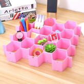 تقسیم کننده کشو لونه زنبوری ، محصولی با طراحی خلاقانه ، نوین و بسیار کاربردی جهت استفاده داخل کشوهای مختلف نظیر کمد ، کابینت و ... می باشد . این تقسیم کننده تولید شده از جنس پلاستیک مقاوم و منعطف است که به سادگی امکان برش زدن جهت سایز کردن متناسب با ابعاد داخل کشو را نیز دارد . تقسیم کننده کشو طرح لونه زنبور دارای 6 خشاب است که به سادگی می توانید آنها را به یکدیگر متصل و در نهایت داخل کشو قرار دهید . ایجاد فضاهای مجزای کوچک برای قرار دادن لوازم و وسایل مختلف به صورت تفکیک شده با نظم و ترتیب داخل کشو مهمترین ویژگی استفاده از تقسیم کننده داخل کشو لانه زنبوری محسوب می شود . علاوه بر این به وجود آمدن طرح لانه زنبور درون کشوی میز ، کمد و یا کابینت شما ، جلوه ای زیبا و جالب توجه را به وجود خواهد آورد . دیواره های تقسیم کننده به شکل ساده همراه با شیارهایی در قسمت بالا و پایین می باشند که با استفاده از برش هایی به شکل قلب تزئین شده اند . شما می توانید با توجه به میزان نیاز ، از این تقسیم کننده استفاده کنید ، در صورت لزوم آن را برش بزنید و یا حتی بشویید