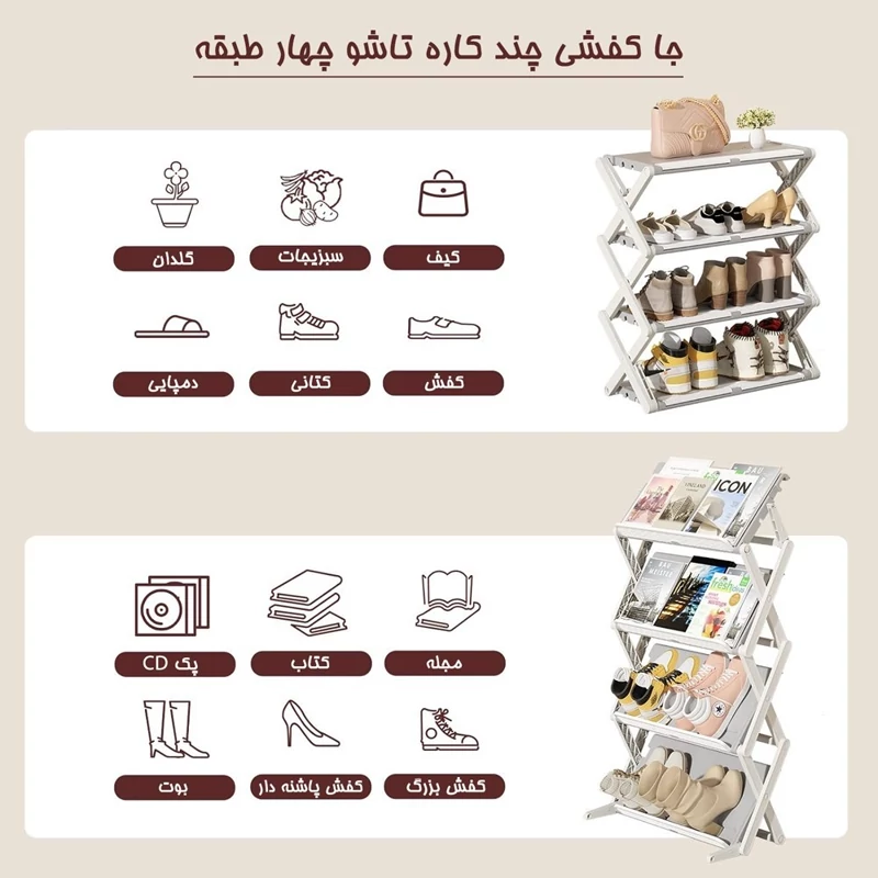 جا کفشی چند کاره تاشو چهار طبقه