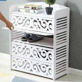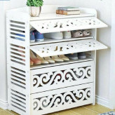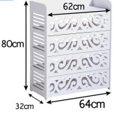 شلف جاکفشی چهار طبقه درب دار ، محصولی جدید با طراحی ظاهری زیبا و در عین حال متفاوت می باشد . این شلف تولید شده از جنس پی وی سی مرغوب و باکیفیت بوده که در برابر آب و رطوبت کاملاً مقاوم است ، بنابراین به سادگی می توانید در صورت نیاز آن را تمیز و یا حتی شست و شو نمایید . جاکفشی طبقاتی از نوع ایستاده می باشد که هر یک از طبقات آن دارای یک درب آسان باز شو اختصاصی است ، بنابراین می توانید کفش ها را به صورت تفکیک شده و منظم با امکان دسترسی سریع و آسان درون آن قرار دهید . فضای روی جاکفشی نیز امکان جای دادن وسایل مختلف نظیر دکوری و تزیینی را برای کاربر خود فراهم نموده . برش های روی دیواره و درب ها جلوه ای چشم نواز را برای کالا به وجود آورده . علاوه بر کفش از این کالا می توانید برای نگهداری لوازم و وسایل مختلف استفاده کنید . قابلیت ست شدن با تم های گوناگون با توجه به رنگ سفید کالا ، کمترین محدودیت در استفاده از جاکفشی را برای کاربران مختلف پدید آورده است