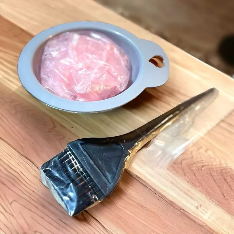 کاسه رنگ مو بهمراه فرچه دستکش و کلاه