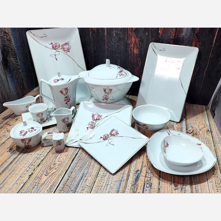 سرویس چینی 6 نفره 67 پارچه نفیس طرح مارگارت صورتی