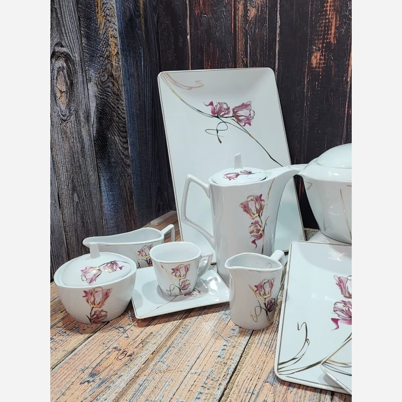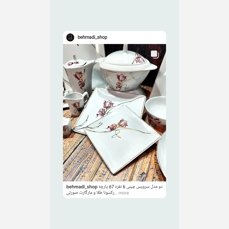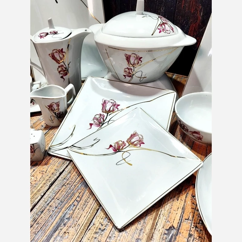 سرویس چینی 6 نفره 67 پارچه نفیس طرح مارگارت صورتی