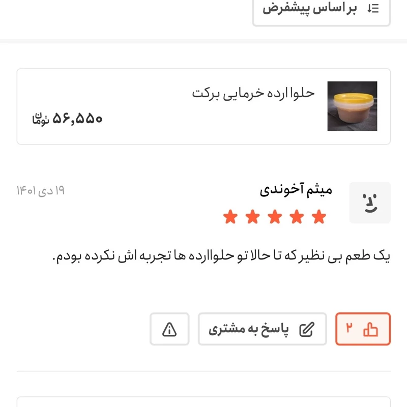 🔷🔹نام کالا: حلوا ارده خرمایی؛