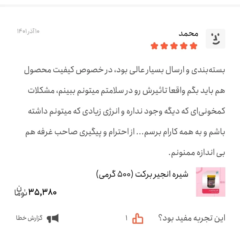 شیره انجیر برکت را با کیفیت بالا و ضمانت بازگشت وجه از فروشگاه اینترنتی برکت بخرید. برای خرید شیره انجیر به بالای صفحه بروید و روی دکمه «اضافه به سبد خرید» کلیک کنید.