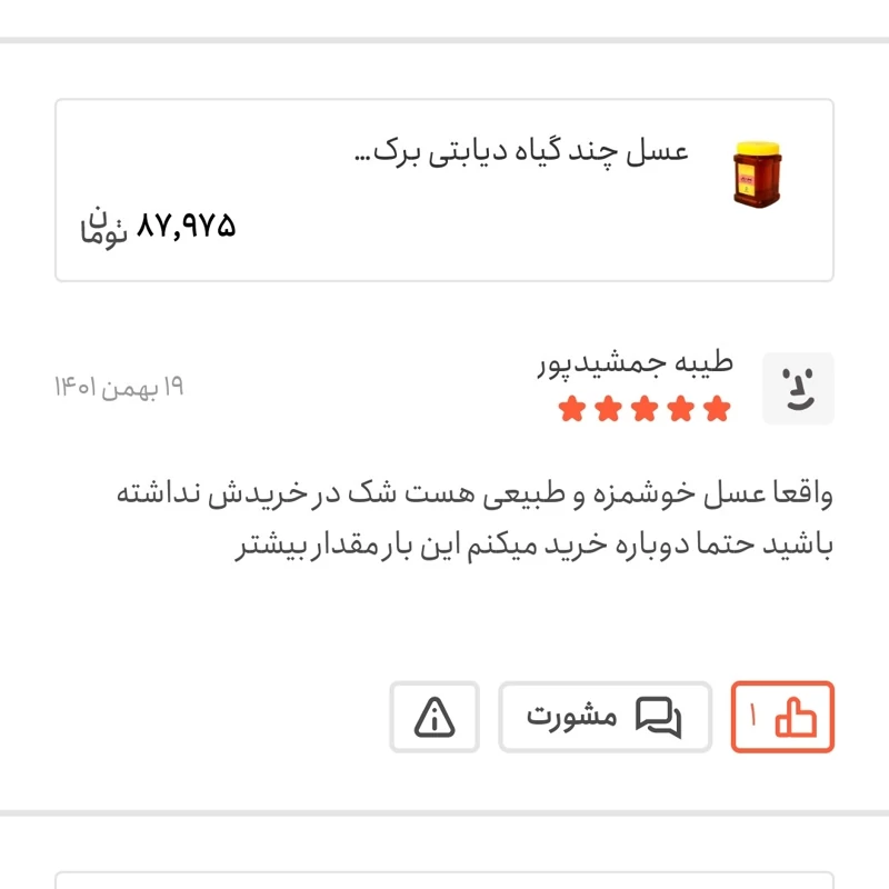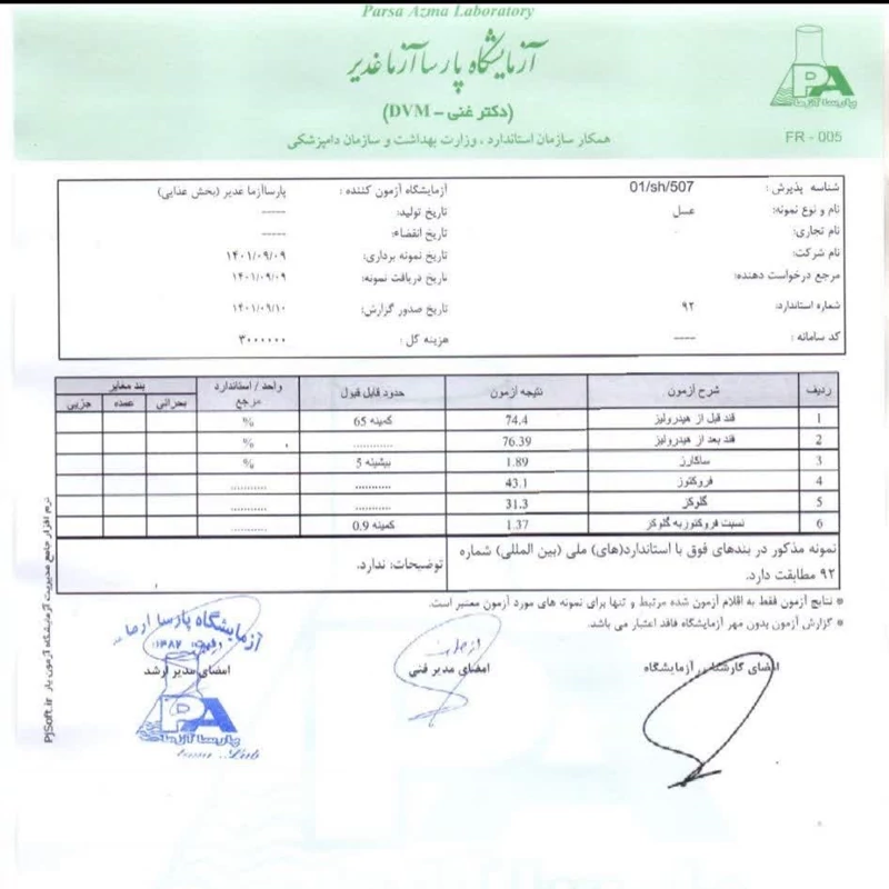 اگر بعد از آنالیز این عسل در آزمایشگاه، به این نتیجه رسیدید که این عسل طبیعی نیست، برکت تمام وجه را به شما بازمیگرداند.