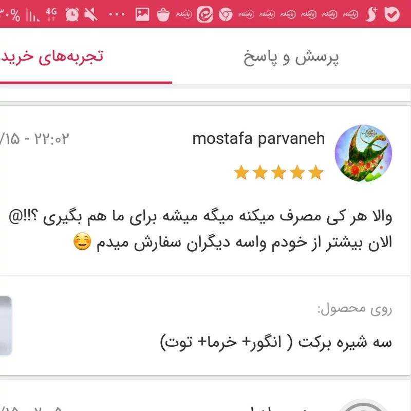 ☘ سه شیره برکت را با کیفیت بالا و ضمانت بازگشت وجه از فروشگاه اینترنتی برکت بخرید. برای خرید سه شیره به بالای صفحه بروید و روی دکمه «اضافه به سبد خرید» کلیک کنید.