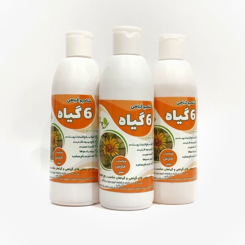 شامپو گیاهی تخصصی شش گیاه ( رفع التهابات رفع خارش ضد شوره ضد موخوره تقویت و رشد مو )(مناسب موهای معمولی)