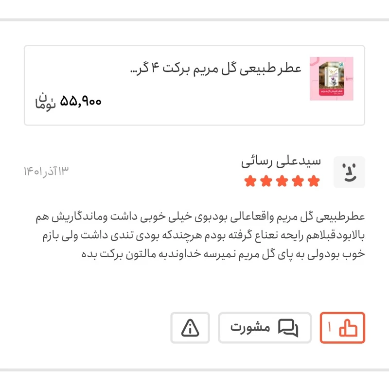 عطر طبیعی گل مریم برکت 4 گرمی (موثر در پیشگیری از کرونا)(گرم و تر)