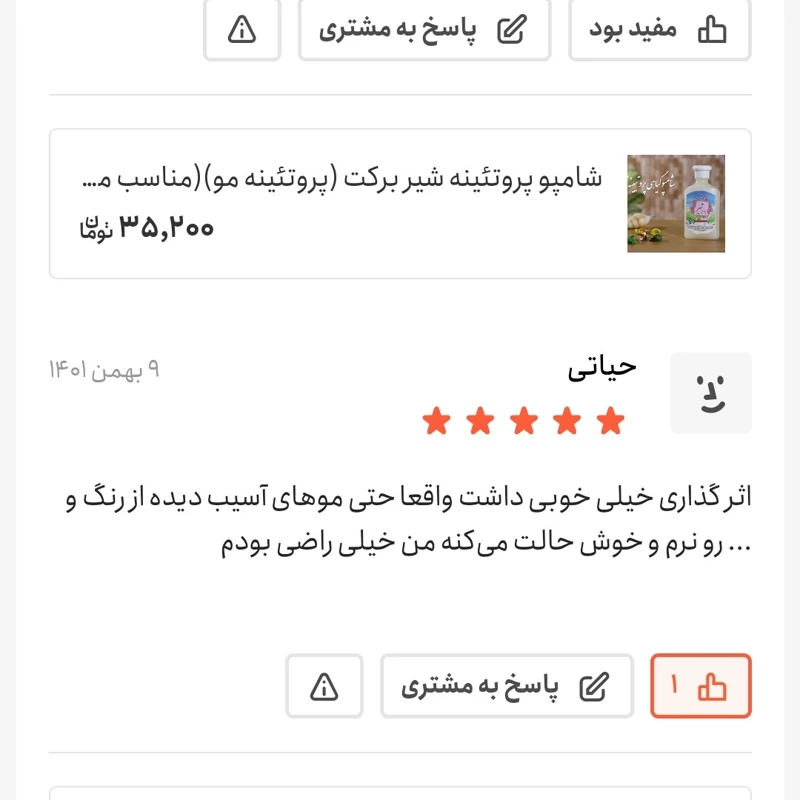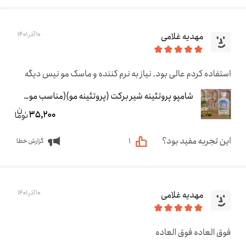 شامپو پروتئینه شیر برکت (پروتئینه مو)(مناسب موهای خشک و مجعد و آسیب دیده و رنگ شده)
