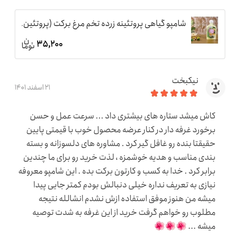🌺 مزایای استفاده از شامپو گیاهی پروتئینه زرده تخم مرغ: