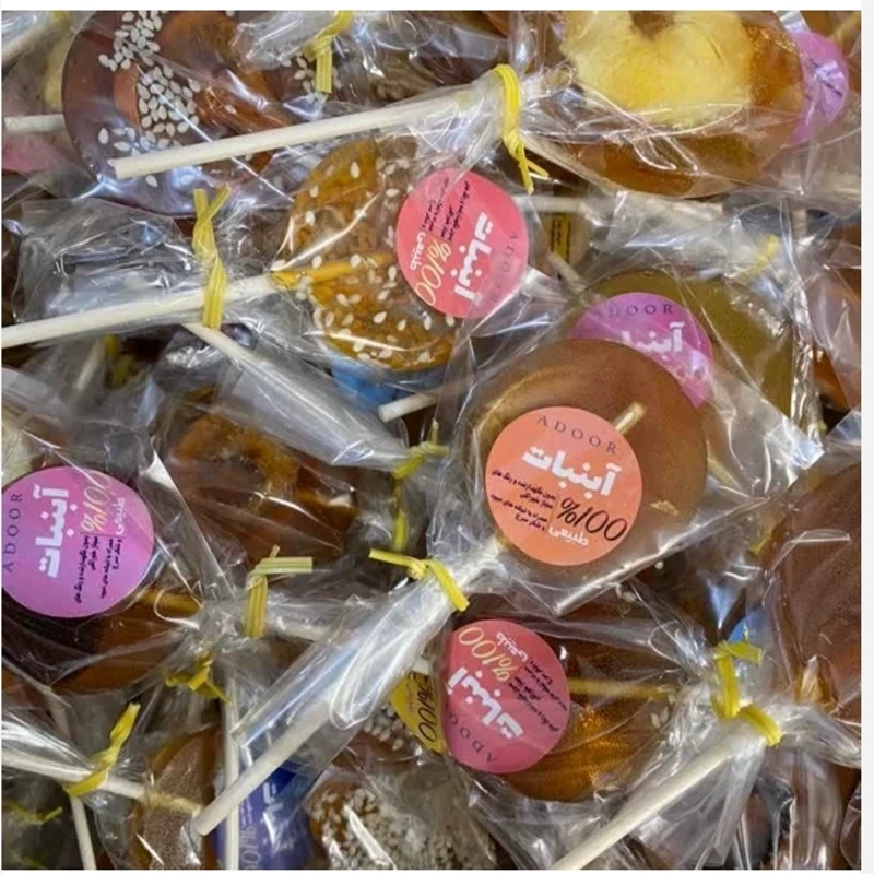 آبنبات با تیکه های میوه سالم و ارگانیک نیشکر با تکه های میوه طبیعی آبنبات چوبی