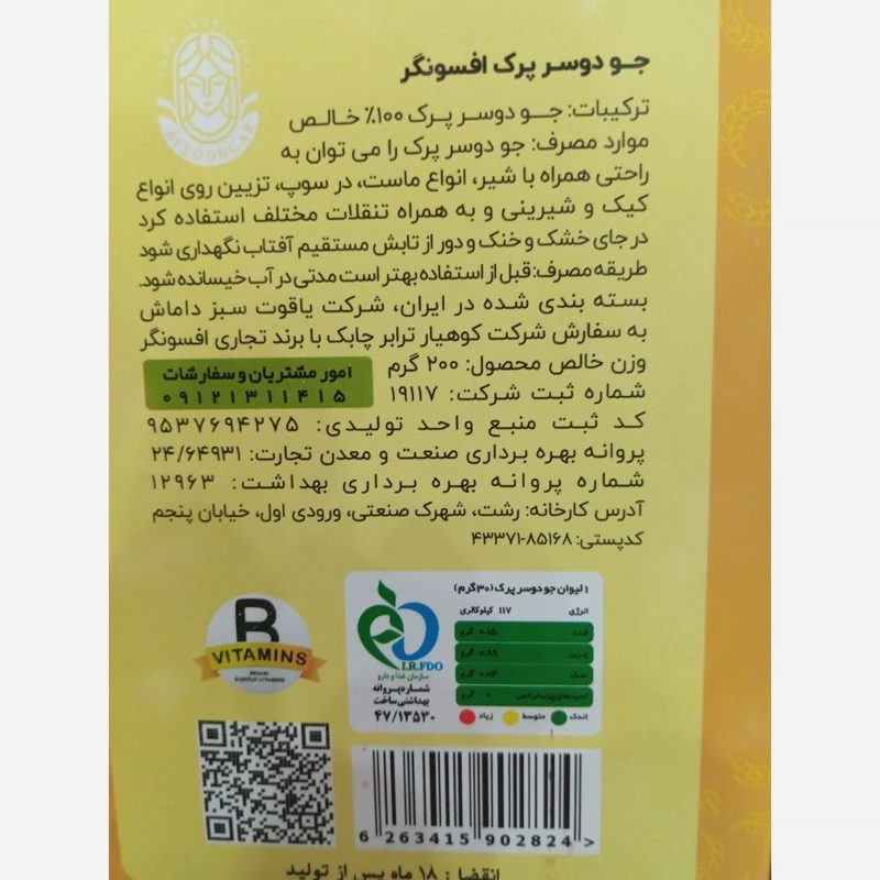 جو دوسر پرک 200 گرمی درجه یک و خالص مقوی غنی از فیبر قیمت مصرف کننده 72