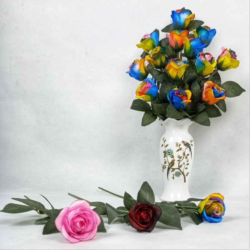 گل مصنوعی رز پارچه ای هلندی تک شاخه کد 211 عالیجناب در هشت رنگ متنوع