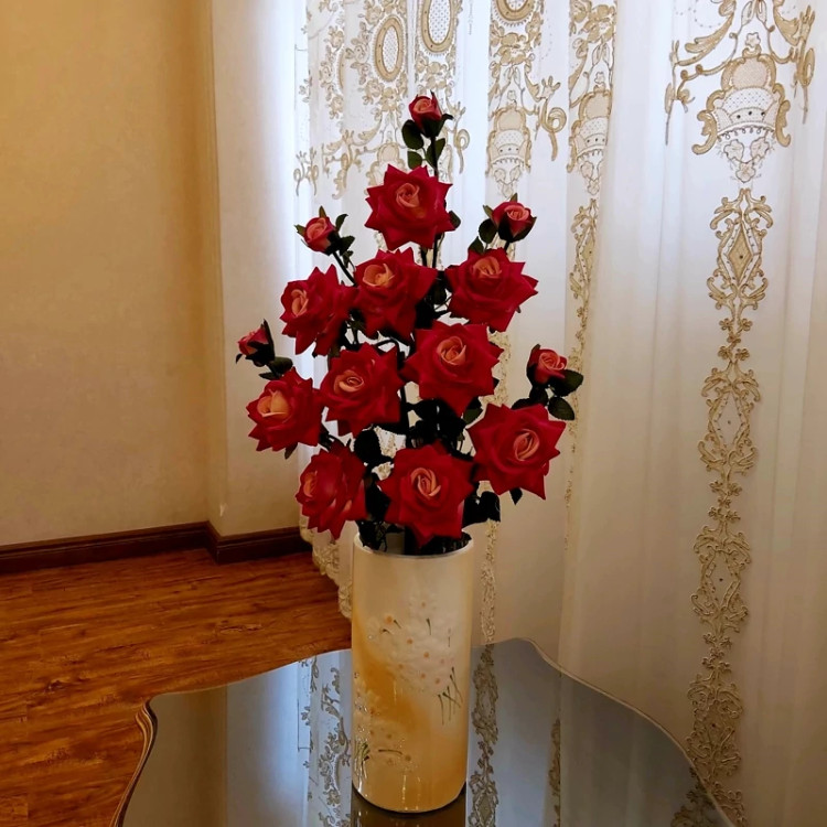 گل مصنوعی رز مخمل سه گل خارجی کد zs531 عالیجناب در ارتفاع 72 سانت
