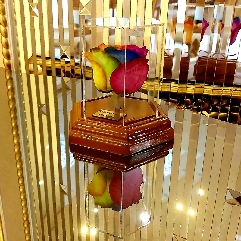 گل رز جاودان طرح پژواک عالیجناب با طراحی شش ضلعی جذاب با کیفیت بدنه چوبی بسیار زیبا ،منحصر بفرد و جدید ، و اما ایده جاودان کردن گل رز ؛ گل رز به عنوان زیباترین و محبوب ترین گل دنیا به ملکه گلها معروف است و سالهاست در تمامی ملت ها شیفتگان و عاشقان زیادی دارد امروزه با پیشرفت علم و تکنولوژی گل رز طبیعی هلندی را با فرایند خاصی ماندگار و جاودان می کنند، دقیقا با همان زیبایی و حس خوب زندگی،طول عمر گل رز جاودان عالیجناب بدلیل روش خاص جاویدان کردن گل رز و کیفیت گلهای دست چین شده از بهترین گلهای رز هلندی طبیعی ، در صورت نگهداری مناسب و جلوگیری از قرار گرفتن در معرض نور مستقیم خورشید و آلودگیهای محیطی مانند گرد و غبار ،...گاها حتی مادام العمر بوده و سالهای سال نمادی از عشق ابدی و جاودان شما خواهد بود،اگر مایلید تا هدیه ای هیجان انگیز و عاشقانه به عزیزانتان تقدیم کنید،باکس گل رز جاودان عالیجناب با طراحی های زیبا یکی از بهترین گزینه هاست ،جدا از جذابیت و مورد پسند بودن گل رز جاودان برای تمامی سلیقه ها ، وجود چنین موجود زنده زیبایی در کنار فرد مورد علاقه شما نشانگر عشق بی پایان شماست تا بداند عشق حقیقی تا ابد زنده و پایدار می ماند.