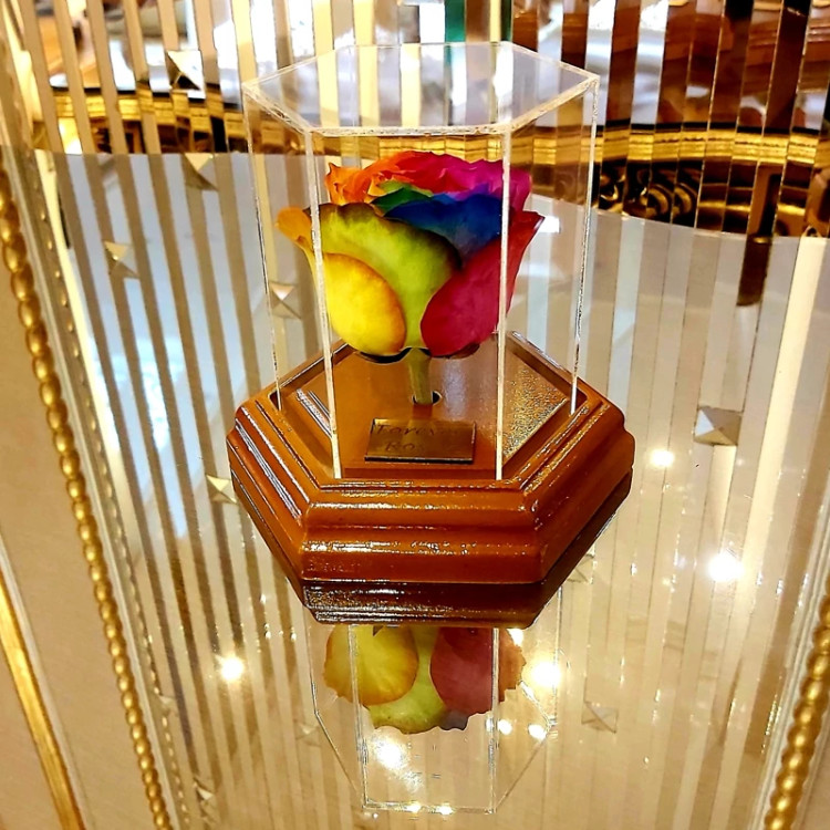 گل رز جاودان طرح پژواک عالیجناب با طراحی شش ضلعی جذاب با کیفیت بدنه چوبی بسیار زیبا ،منحصر بفرد و جدید ، و اما ایده جاودان کردن گل رز ؛ گل رز به عنوان زیباترین و محبوب ترین گل دنیا به ملکه گلها معروف است و سالهاست در تمامی ملت ها شیفتگان و عاشقان زیادی دارد امروزه با پیشرفت علم و تکنولوژی گل رز طبیعی هلندی را با فرایند خاصی ماندگار و جاودان می کنند، دقیقا با همان زیبایی و حس خوب زندگی،طول عمر گل رز جاودان عالیجناب بدلیل روش خاص جاویدان کردن گل رز و کیفیت گلهای دست چین شده از بهترین گلهای رز هلندی طبیعی ، در صورت نگهداری مناسب و جلوگیری از قرار گرفتن در معرض نور مستقیم خورشید و آلودگیهای محیطی مانند گرد و غبار ،...گاها حتی مادام العمر بوده و سالهای سال نمادی از عشق ابدی و جاودان شما خواهد بود،اگر مایلید تا هدیه ای هیجان انگیز و عاشقانه به عزیزانتان تقدیم کنید،باکس گل رز جاودان عالیجناب با طراحی های زیبا یکی از بهترین گزینه هاست ،جدا از جذابیت و مورد پسند بودن گل رز جاودان برای تمامی سلیقه ها ، وجود چنین موجود زنده زیبایی در کنار فرد مورد علاقه شما نشانگر عشق بی پایان شماست تا بداند عشق حقیقی تا ابد زنده و پایدار می ماند.