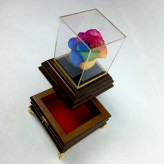 گل رز جاودان هفت رنگ با باکس چوبی صندوقچه جواهرات با ضمانت 7 ساله عالیجناب