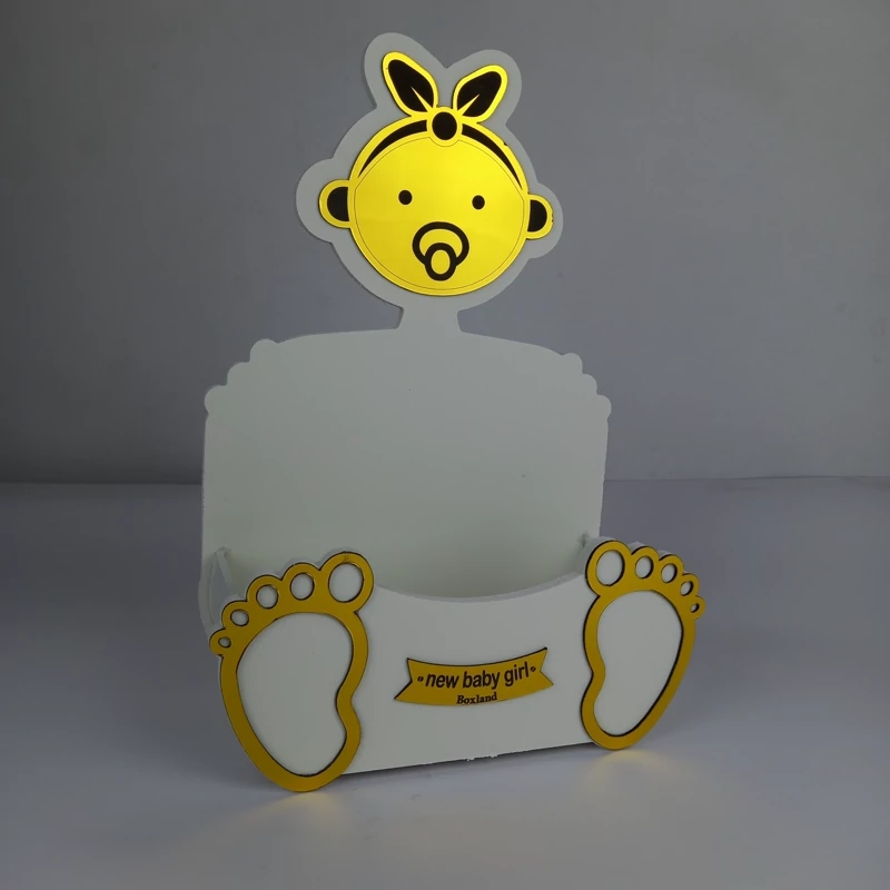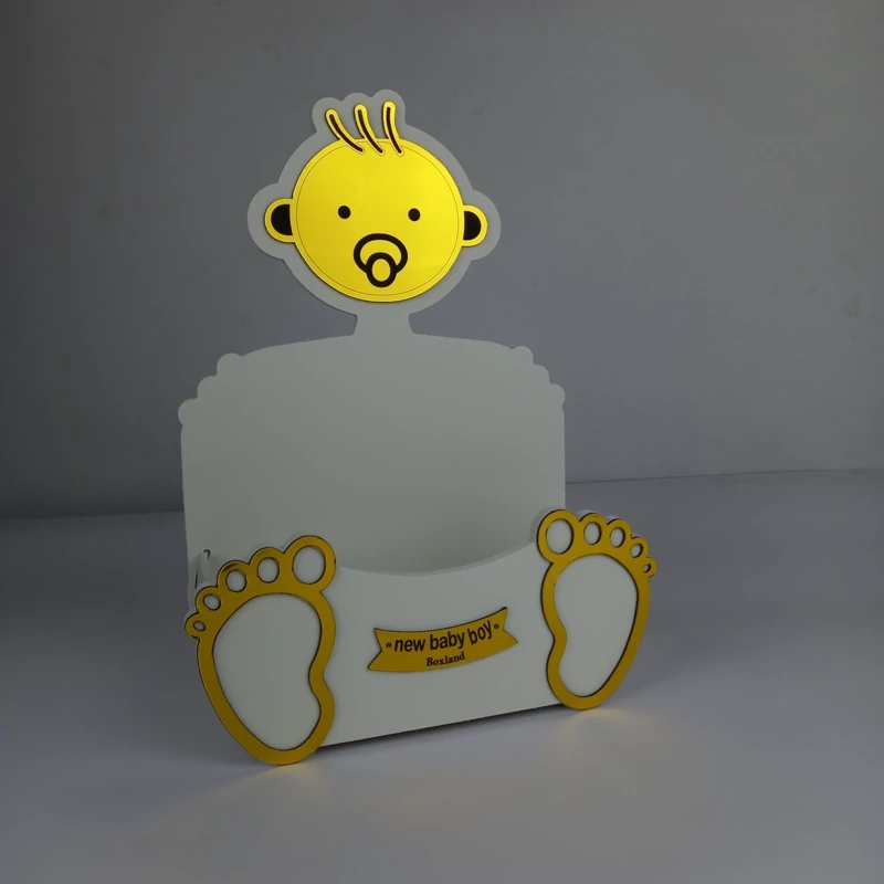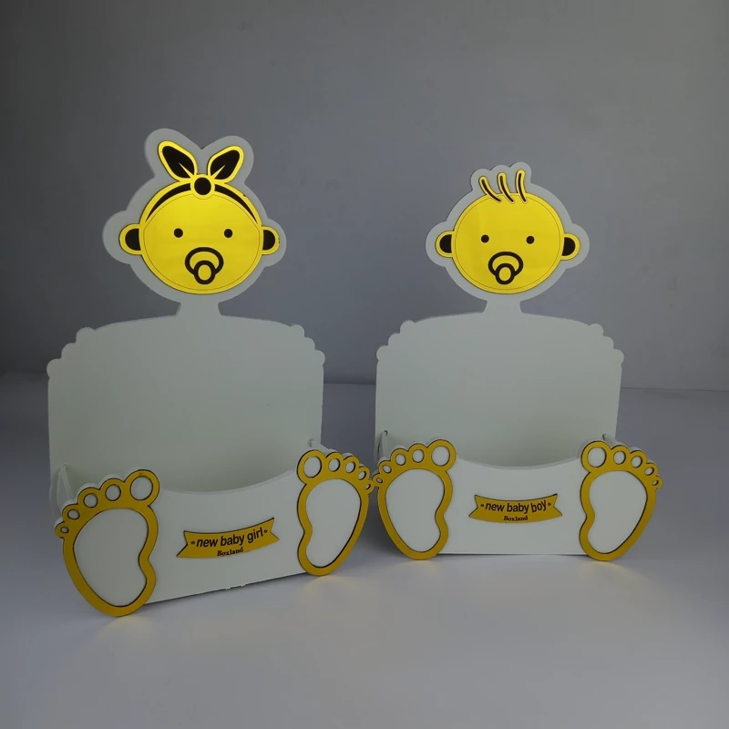 باکس گل شبیه سازی شده نوزاد پسر و دختر ، طراحی زیبا با تلفیق رنگ سفید و طلایی