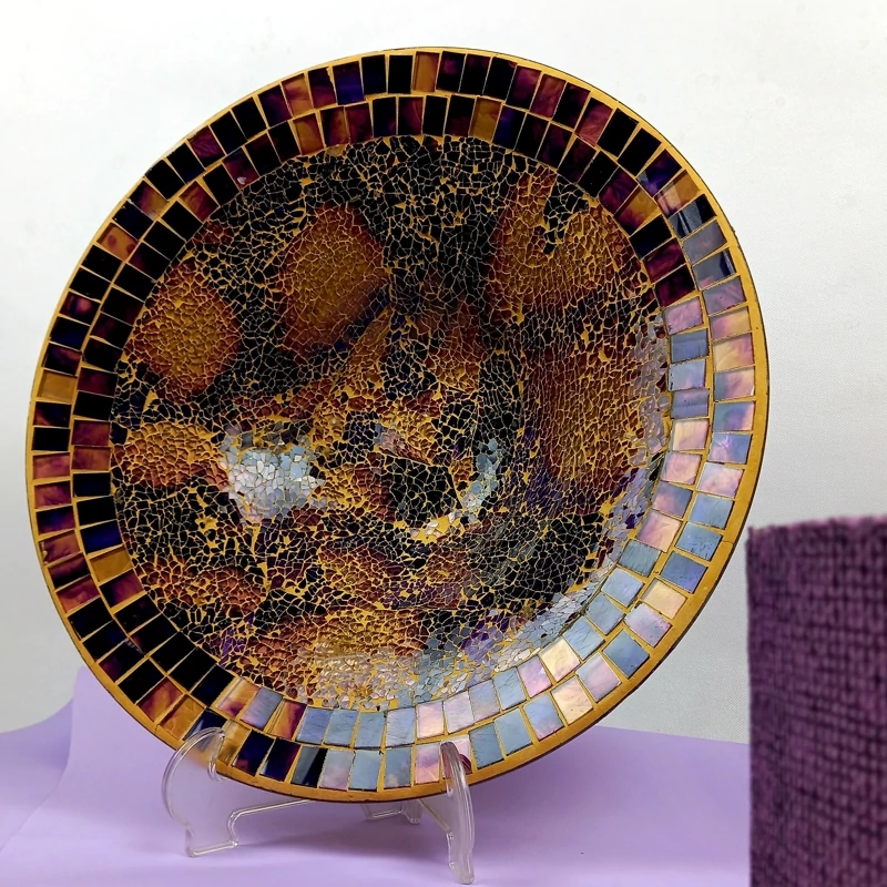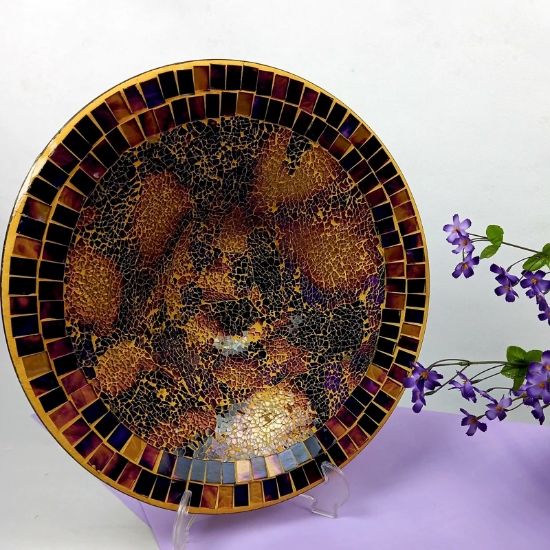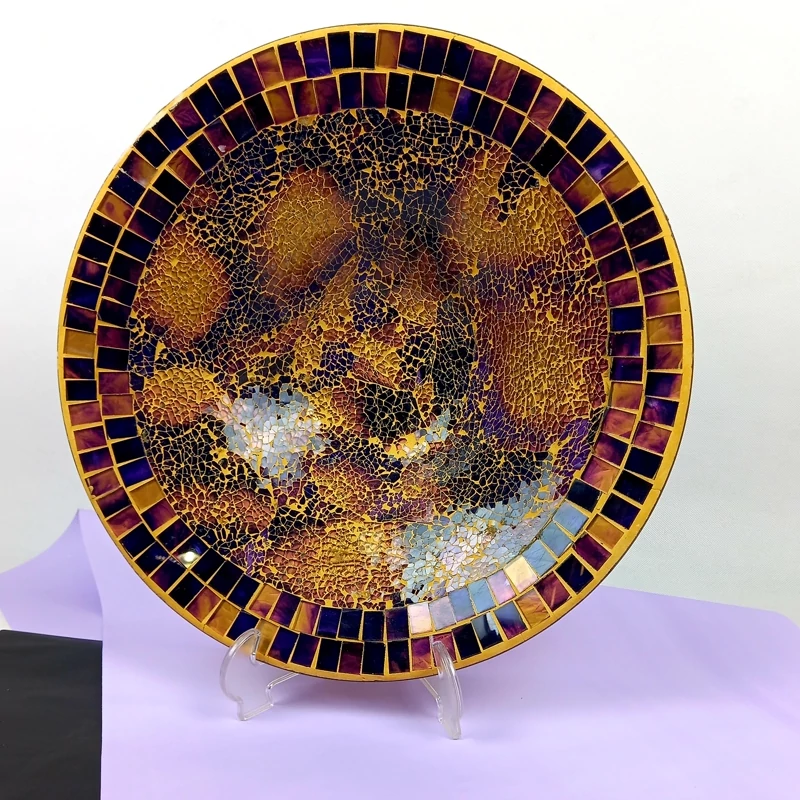 بدنه اصلی بلور ی و روی بلور با متریال خاص تکه های شیشه رنگی و مواد رزینی تزیین شده که باعث استحکام و نمای خاص و جلوه فوق العاده منحصر بفرد این محصول گردیده