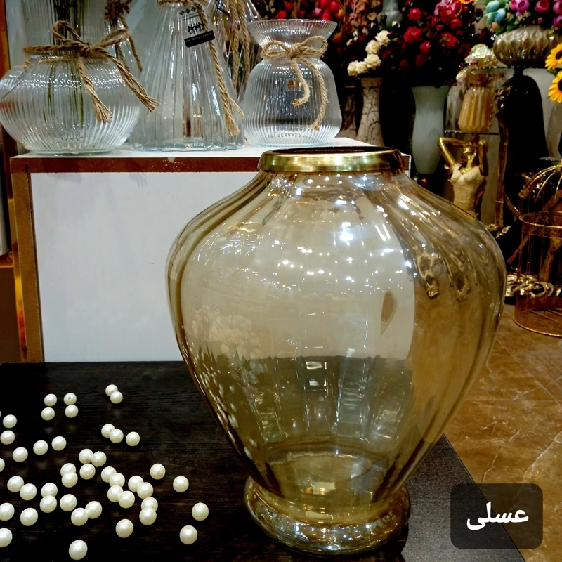 گلدان رومیزی شیشه ای آبکاری لاستر با کیفیت آبکاری عالی و بهترین متریال ساخت با کیفیت شرکتی درجه یک ، یکی از ویژگیهای بارز گلدانهای شیشه ای لاستر عالیجناب رنگ پی وی دی مقاوم در برابر نور خورشید و مواد شوینده می باشد ، تنوع رنگی بالا و رنگ آمیزی بسیار زیبا با دهانه فلزی آبکاری شده طلایی براق و بدنه شیشه ایی ضخیم گلدانی زیبا و خاص خلق کرده که زینت دهنده گلها و دکوارسیون منزل شما عزیزان باشد .