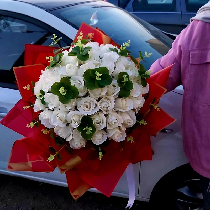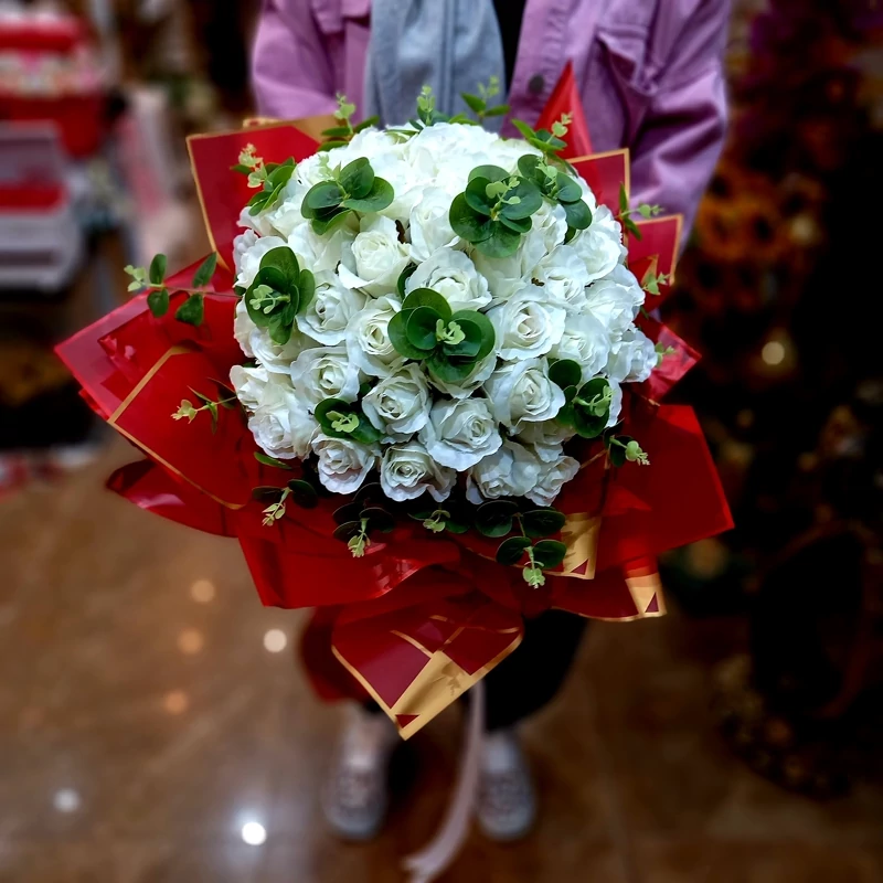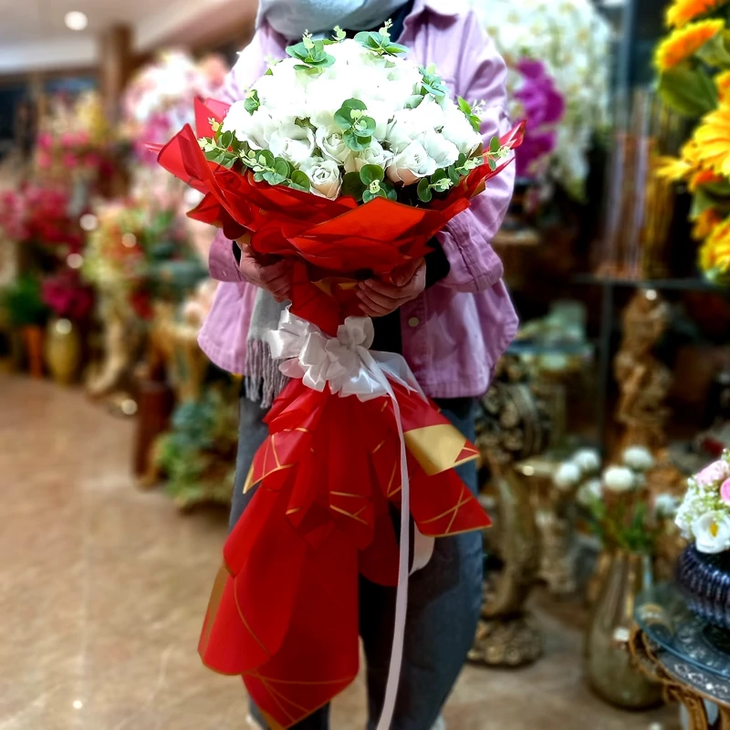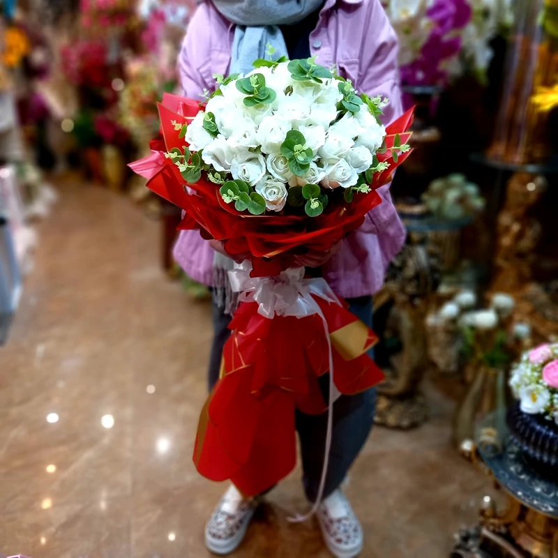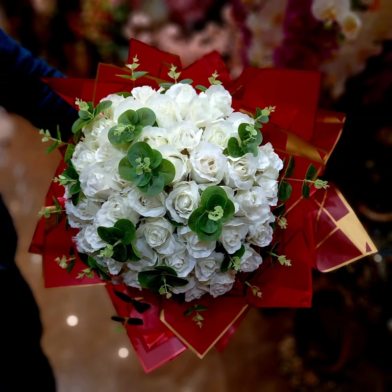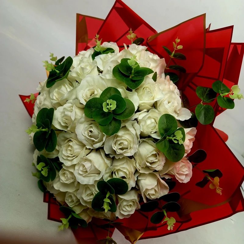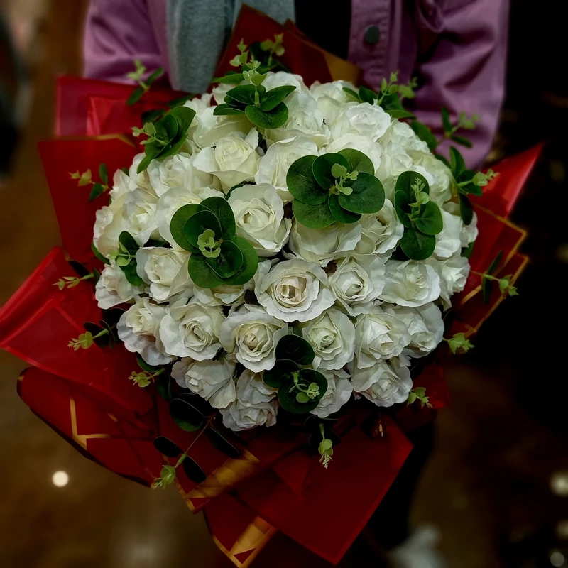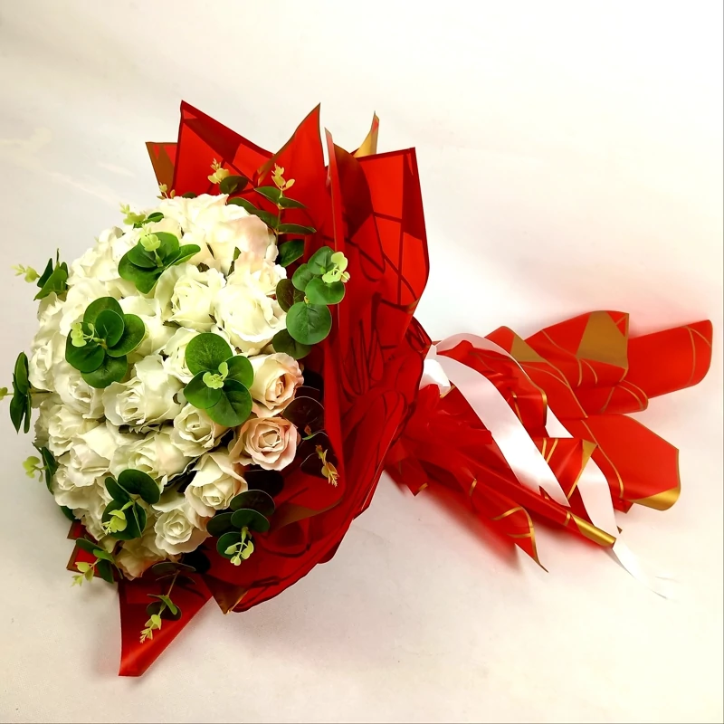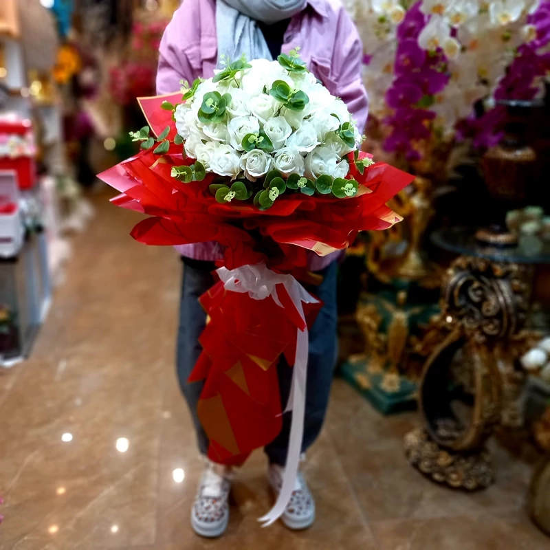 دسته گل مصنوعی برای هدیه 50 گل رز vip در ارتفاع 110 سانتیمتر (عالیجناب )