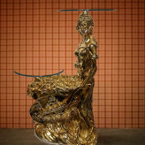 میز تلفن و دکوری دختر گلفروش دو شیشه آبکاری طلا عالیجناب