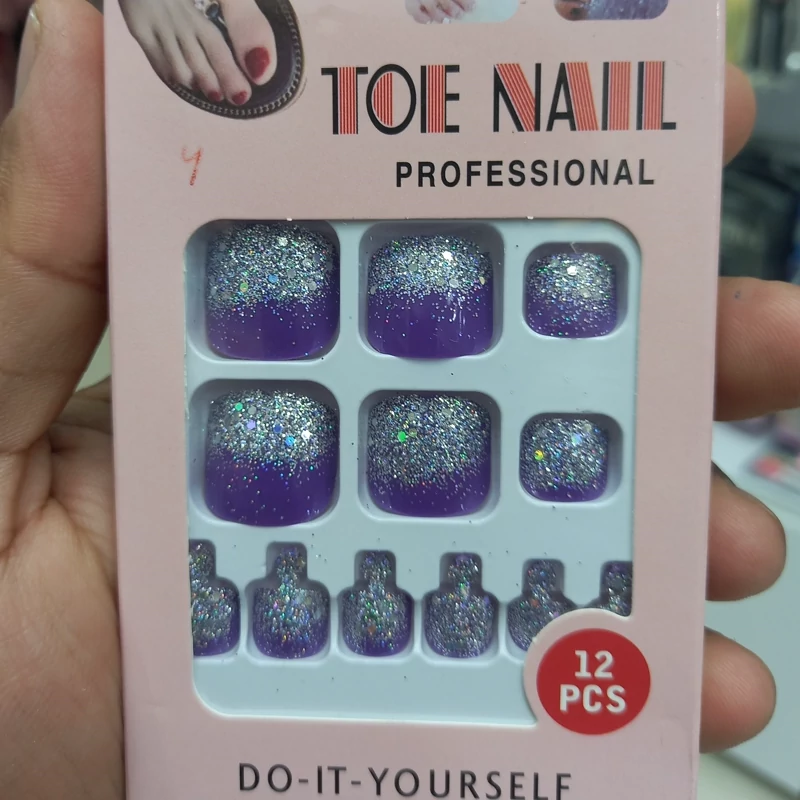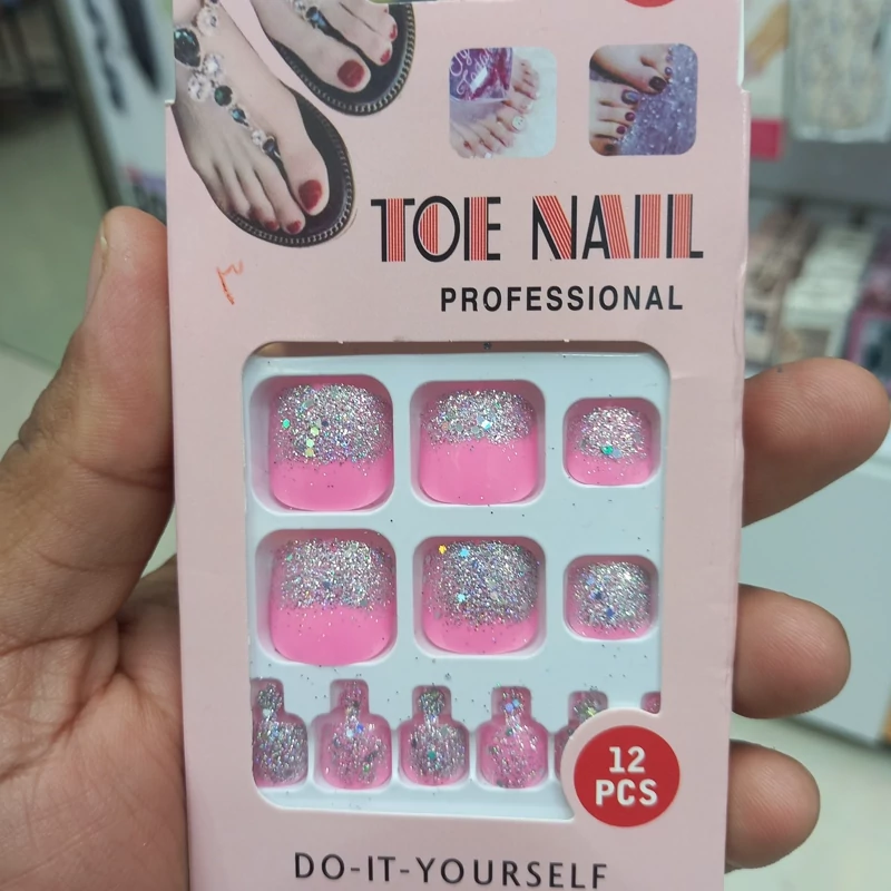 ناخن مصنوعی پا 12 عددی اکلیلی با چسب دوطرفه