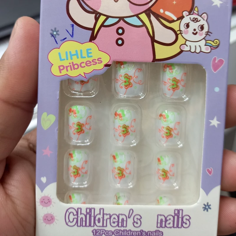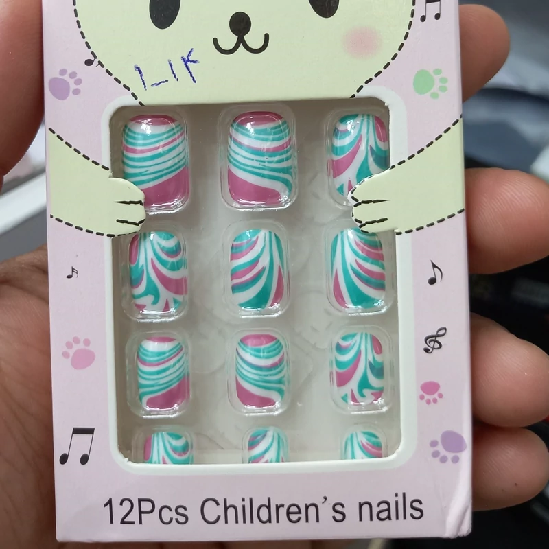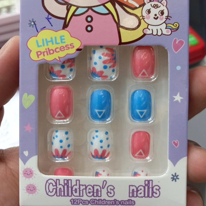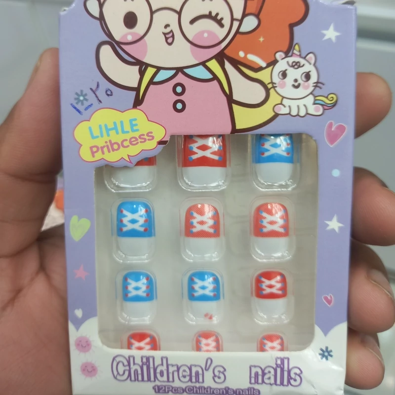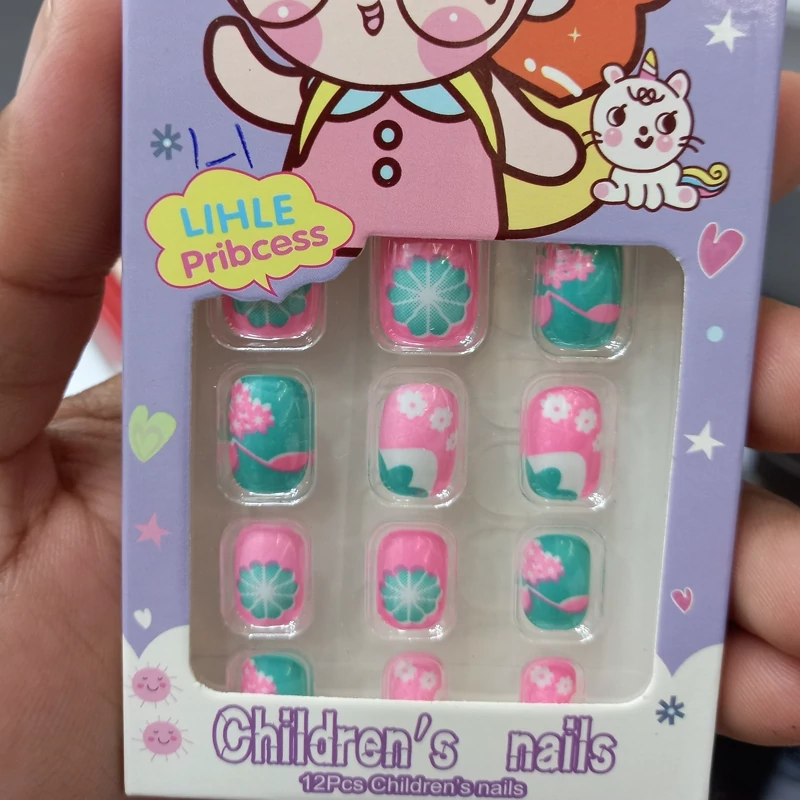ناخن مصنوعی بچه گانه 12 عددی با چسب دولبه طرح 2