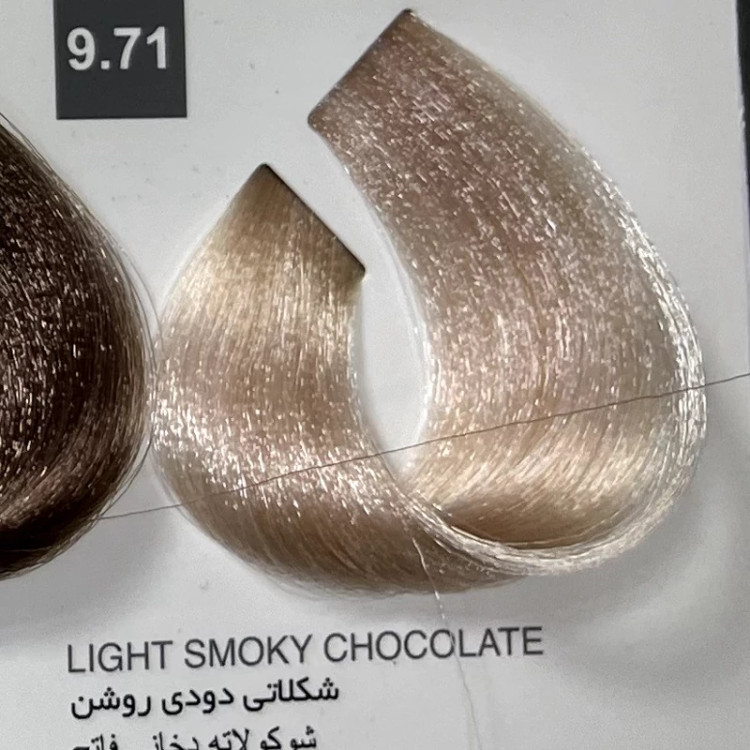 رنگ شکلاتی دودی روشن 9.71 ،رنگ مو کاترومر بدون آمونیاک و یک عدد اکسیدان 150 میلی لیتر