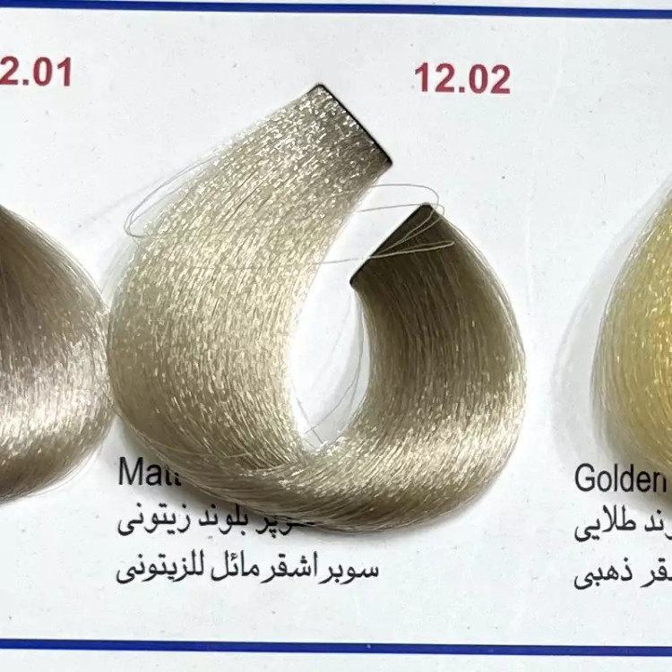 سوپر بلوند زیتونی 12.02 ،،رنگ مو کم آمونیاک پیلون و یک عدد اکسیدان