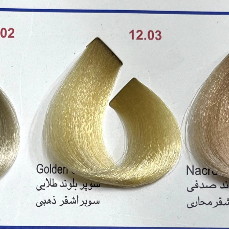 سوپر بلوند طلایی 12.03 ،،رنگ مو کم آمونیاک پیلون و یک عدد اکسیدان