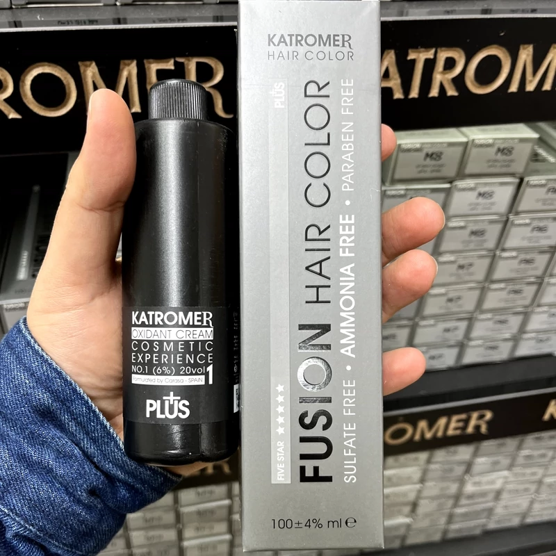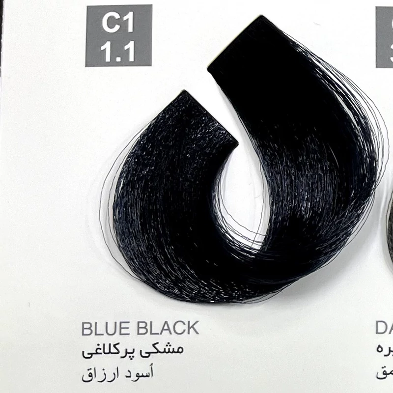 رنگ مشکی پر کلاغیC1 ،1.1 ،رنگ مو کاترومر بدون آمونیاک و یک عدد اکسیدان 150 میلی لیتر