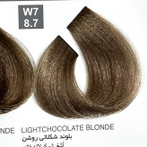 رنگ بلوند شکلاتی روشنW7 ،8.7 ، رنگ مو کاترومر بدون آمونیاک و یک عدد اکسیدان 150 میلی لیتر