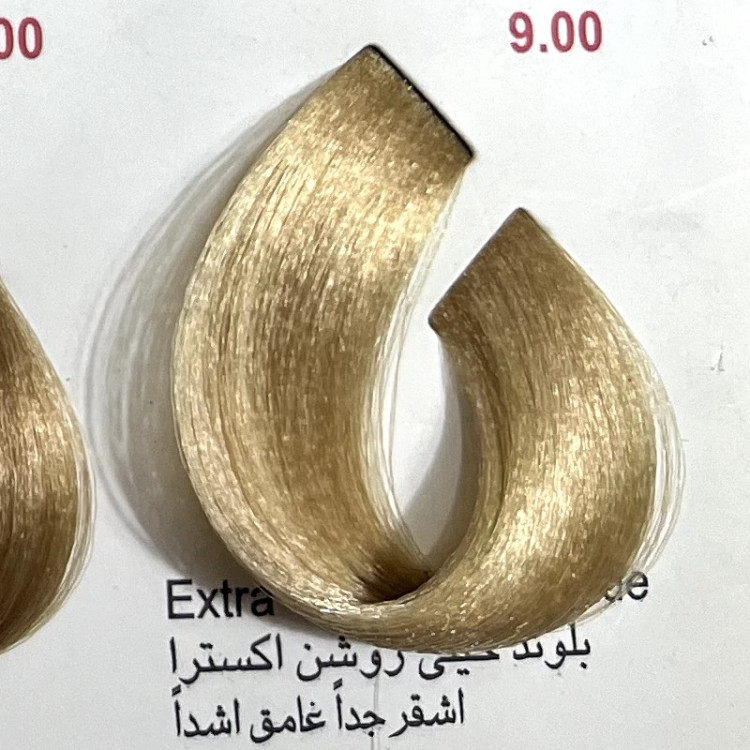 رنگ بلوند خیلی روشن اکسترا 9.00 ،رنگ مو کم آمونیاک پیلون و یک عدد اکسیدان