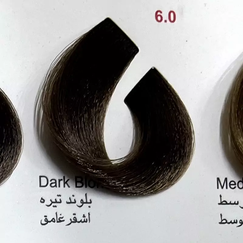 رنگ بلوند تیره6.0 ،رنگ مو کم آمونیاک پیلون و یک عدد اکسیدان