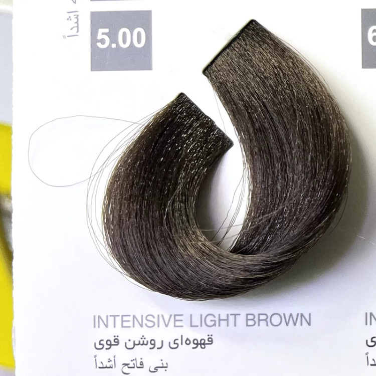 رنگ قهوه ای روشن قوی5.00،رنگ مو کاترومر بدون آمونیاک و یک عدد اکسیدان 150 میلی لیتر