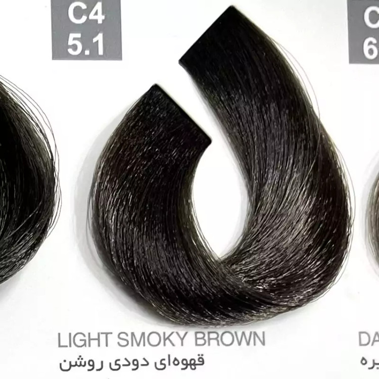رنگ قهوه ای دودی روشن C4 ،5.1 ، رنگ مو کاترومر بدون آمونیاک و یک عدد اکسیدان 150 میلی لیتر