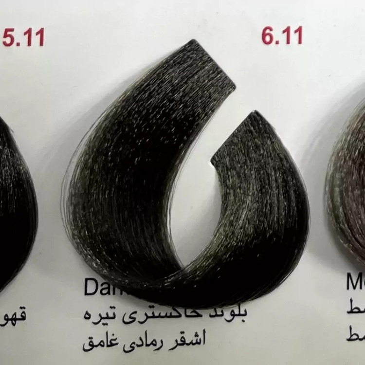رنگ بلوند خاکستری تیره 6.11 ،رنگ مو کم آمونیاک پیلون و یک عدد اکسیدان