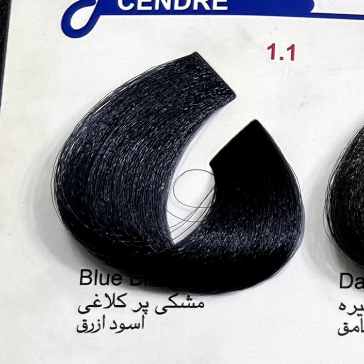 رنگ مشکی پر کلاغی 1.1 ،رنگ مو کم آمونیاک پیلون و یک عدد اکسیدان