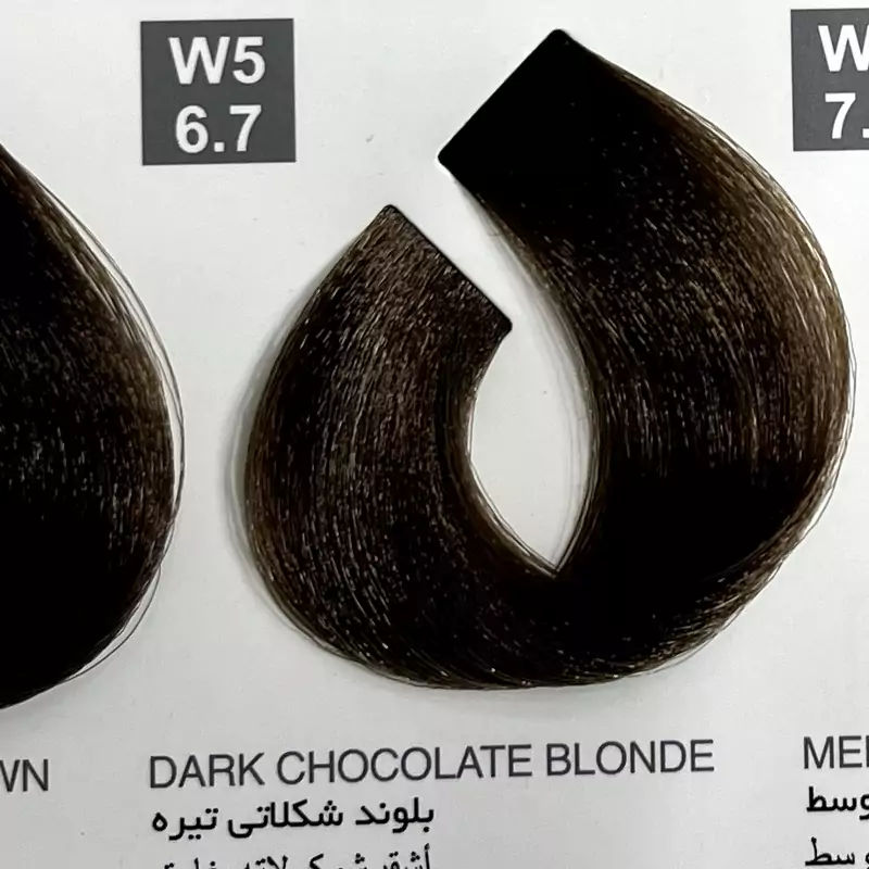 رنگ بلوند شکلاتی تیرهW5 ،6.7 ، رنگ مو کاترومر بدون آمونیاک و یک عدد اکسیدان 150 میلی لیتر
